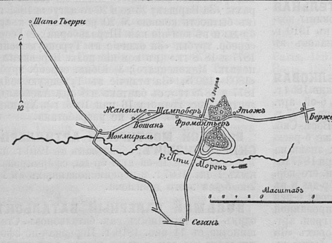 Карта для пояснения дел при Шампобере, Монмирале, Шато-Тьерри, Вошане и Этоже.