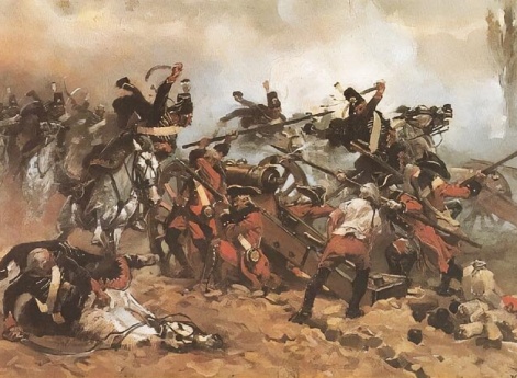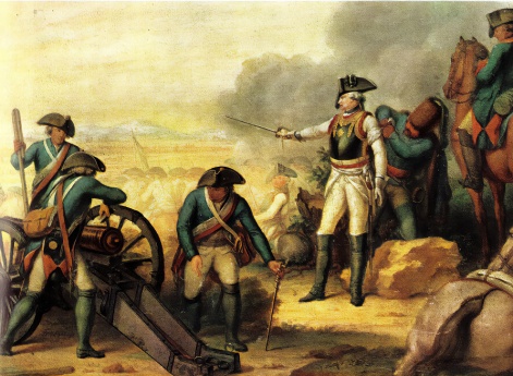 Действия в Богемии, Саксонии и СилезииСтратегия Фридриха II в кампаниях 1757 г. состоит в том, чтобы выбить из войны Австрию до подхода на театр военных действий войск ее союзников – Франции и России. В апреле Фридрих II атакует австрийцев в Богемии и 6 мая наносит им под Прагой поражение. Но 18 мая под Колином (Богемия) прусская армия терпит поражение от войск австрийского фельдмаршала Дауна 1, что вынуждает Фридриха снять осаду Праги и отступить. Осенью одновременное наступление французов в направлении Саксонии и австрийцев в Силезии создает для Фридриха серьезную угрозу, но ему удается разбить их по очереди в двух генеральных сражениях: 5 ноября Фридрих II громит французскую армию маршала Субиза при Росбахе (Саксония) 2, а 5 декабря наносит австрийцам тяжелое поражение при Лейтене (Силезия) 3.
