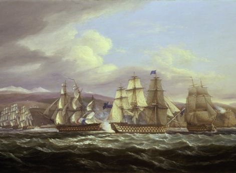 Робер, не раздумывая, скомандовал: «К бою!» Для поднятия духа команде были розданы чашки кофе с ромом. При этом на запрос британца Сюркуф ответил непонятной белибердой, не показывая флага. «Кент», недолго думая, дал залп – мимо! Сюркуф ответил – недолет!