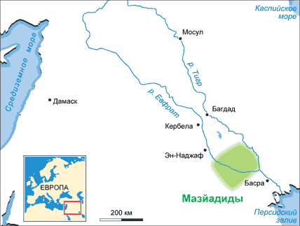 «Бену-Мазъяд, одно из подразделений племени Бену-Асад, покинув Аравию, расселились по пустыням до Кадисии, на левом берегу Тигра. Четвертый представитель династии, Садака, в 1101 (495) г. построил свою новую столицу, Хиллу, на месте расположения города Джамиана; красота зданий и торговое значение этого города долго пользовались известностью. Садака ?- один из выдающихся героев арабской истории, прославленный поэтами и летописцами. После его смерти династия пришла в упадок; в 1162 (558) г. халиф Мустанджид произвел нападение на различные отделы племени Бену-Асад в Ираке; при этом из них были убиты до 4000 человек, способных носить оружие, так что племя совсем исчезло с берегов Евфрата. Племя Бену-Мунтафик из Батихи ... заняло часть их области; власть Мазъядидов перешла к Зенгидам».