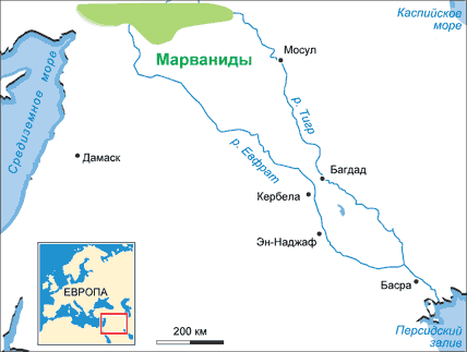 , династия курдского происхождения, правившая в 983-1085 гг. Основатель — Бад ал-Курди (983-990) совершал набеги на Дийарбакр и захватил несколько крепостей на границе Армении и Курдистана. Воспользовавшись ослаблением Буидов, Марваниды захватили у Хамданидов Маййафарикин и значительную часть Дийарбакра, в том числе Амид, Нисибин. При эмире Ахмаде б. Марване (1011-1061) государство Марванидов достигло значительного могущества и процветания, не последнюю роль в котором сыграло стратегическое положение Дийарбакра, контролировавшего дорогу из Ирака в Сирию и Анатолию. Для обеспечения безопасности свого государства Ахмад б. Марван платил дань Укайлидам и передал им в 1030 г. Нисибин. В 1056 г. он признал себя вассалом сельджукского султана Тогрул-бека (1038-1063). В 1085 г., после ожесточенного сражения, Дийарбакр был завоеван и вошел в состав государства Сельджукидов.