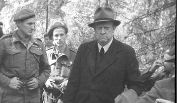 Плененный Видкун Квислинг среди британских военнослужащих. Май 1945 г.