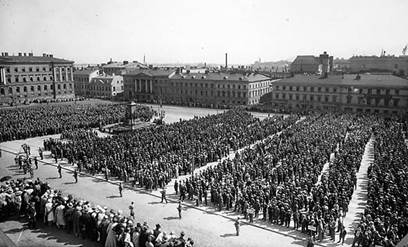 7 июля того же года 12 000 членов Движения Лапуа прошли маршем по улицам финской столицы, а затем и перед резиденцией президента страны Лаури Кристиана Реландера (Lauri Kristian Relander), который приветствовал их вместе с правительством Финляндии.