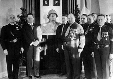 Лидеры Отечественного народного движения возле бюста Бенито Муссолини