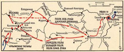 1552 год. 16 июня войско Ивана IV выступает на Казань против крымского хана Девлет-Гирея