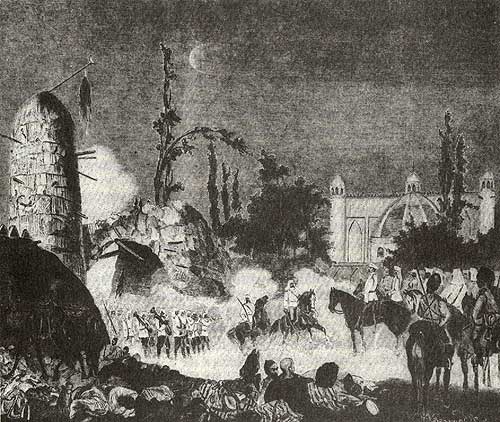 С покорением Ташкента, доносил тогда Черняев, мы приобретаем положение в Средней Азии, сообразное с достоинством империи и мощью русского народа. Да, взятие Ташкента послужило началом, основанием могуществу и высокому значению России в Средней Азии и открыло двери в этот неведомый и таинственный уголок мира!» «16 лет тому назад, на нашем крайнем юго-востоке, за киргизской степью, в самой глуши и глубине Средней Азии, в ночь с 14-го на 15-е июня, незначительный отряд, пользуясь темнотою ночи, пробирался по садам громадного по пространству стотысячного азиатского города, окруженного рвом и высокой стеной, с целью подойти незаметно к воротам и овладеть им. Какая смелость! Какая дерзость! Как оторвавшееся от массивной тучи облачко блуждает одно в необъятном пространстве по поднебесью и оставляет по пути тут и там едва заметные клочки, так и эта ничтожная горсть смельчаков оторвалась от родного материка, гуляя по степи, забралась в самую глубь варварской замкнутой азиатской страны и с дерзкою отвагой подкрадывается к громадному, уснувшему в тени своих садов укрепленному городу, который, проснувшись, пожалуй, охватит и раздавит дерзких смельчаков... Но то была горсть отважных русских пионеров, которая уже много десятков лет гуляет по необъятной киргизской степи, проводит в нее и водворяет в ней русское имя, русскую славу и русские интересы, а с ними мир и порядок! То были герои: Узун-агача, Пишпека, Аулиеата, Чимкента, Акмечети, Туркестана, Икана, Акбулака и Сарытюбе, которые привыкли не считать, а бить врага! Там были боевые степные русские офицеры, а во главе стоял — Черняев! Скажет-ли кто теперь что это горсть дерзких смельчаков? нет, это горсть отважных и смелых пионеров великой матушки России, посланных ею с высокой миссией открыть дорогу и отворить ворота в эту неведомую варварскую Азию!..