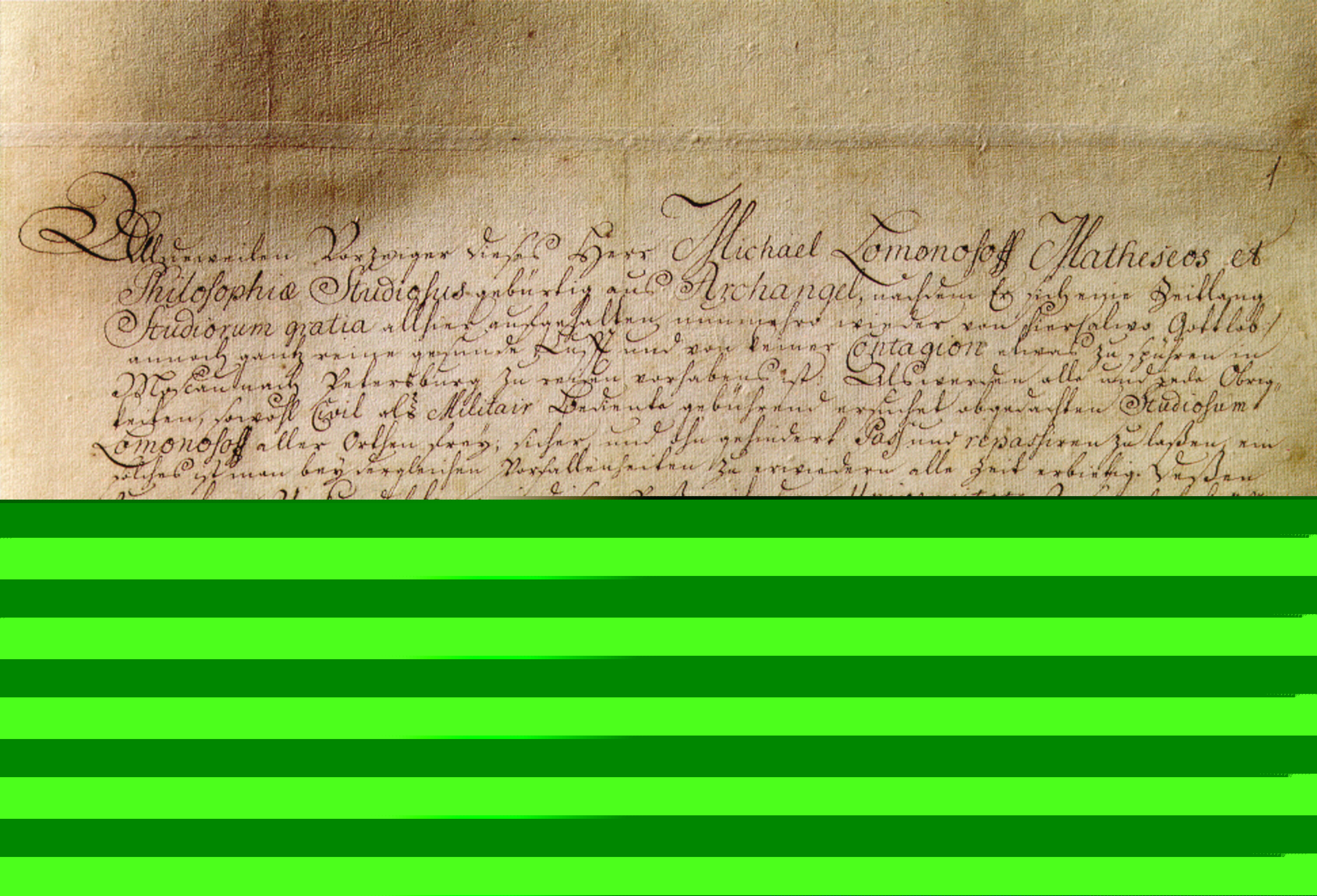 3. Михайло Ломоносов, крестьянский сын из Архангелогородской губернии, Двиницкого уезда, Куростровской волости, двадцати двух лет».