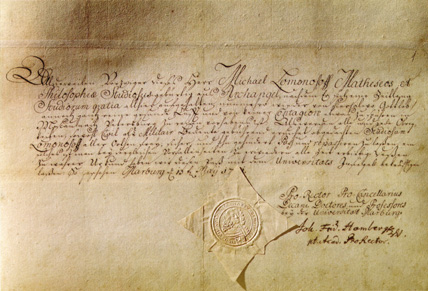 В 1736 году М. В. Ломоносов был направлен вместе с Д. Виноградовым и Г. Райзером за границу для изучения химии и горного дела. После подготовки в Петербурге и утверждения Кабинетом министров студенты прибыли в Германию и поступили в Марбургский университет к профессору Христиану Вольфу. Обучаясь физике, химии, механике, Ломоносов проявил необычайное трудолюбие и наблюдательность, что заложило основы его будущих научных открытий и становления как одного из величайших российских ученых XVIII века.