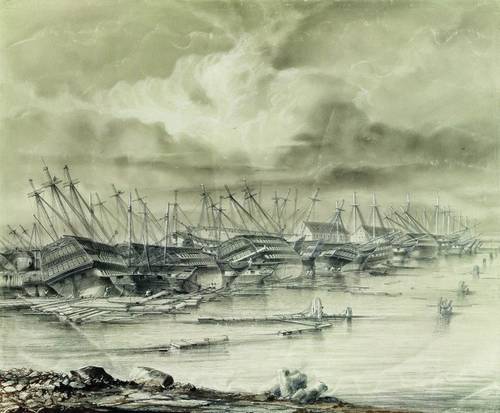 Кронштадтская военная гавань после наводнения. Боголюбов А.П. 1850 год.