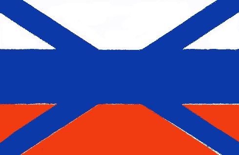 Флаг белый, поперек этого имеется синий Андреевский крест, коим Россию окрестил он.