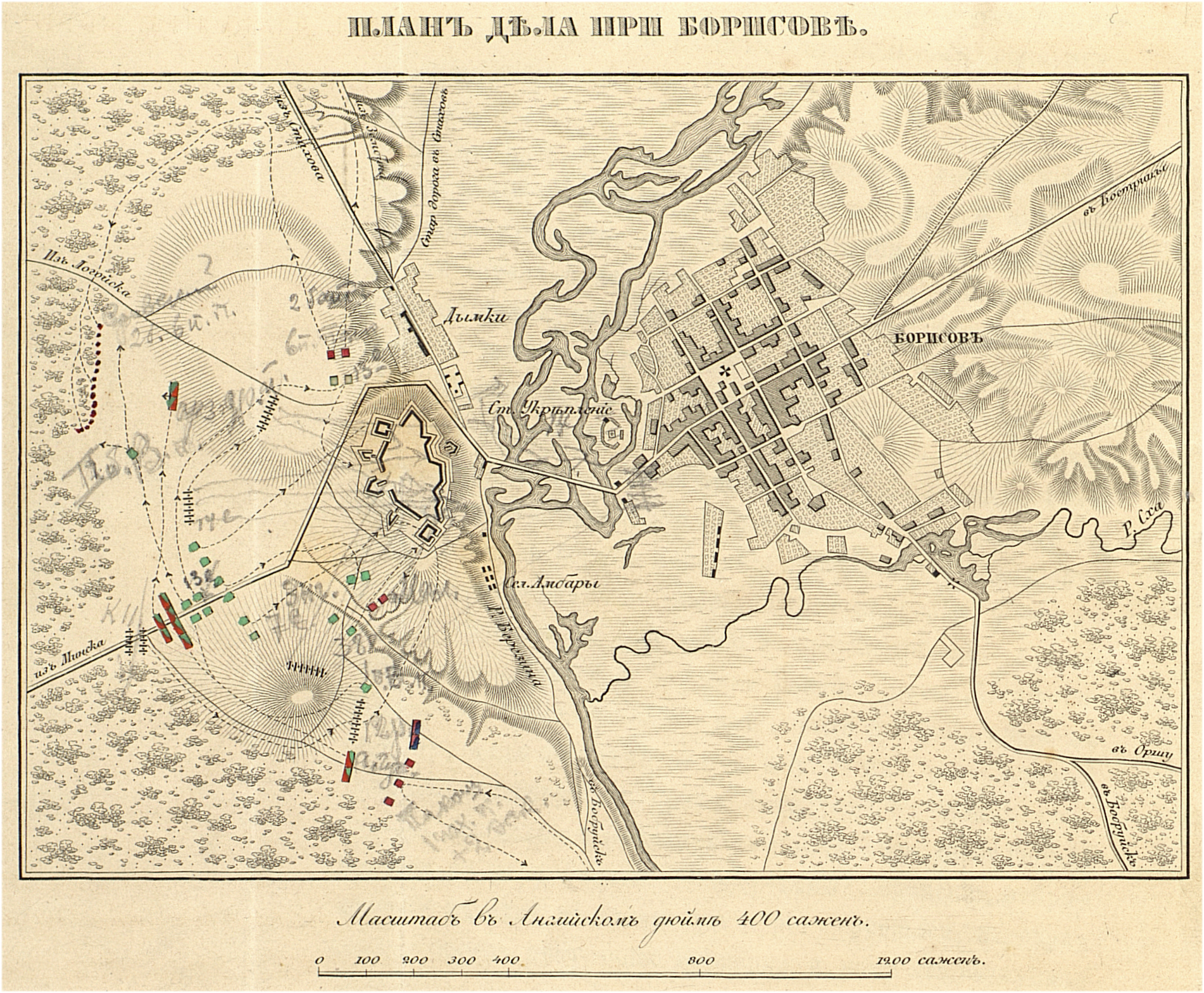 Но уже Русские были близко. Передовые посты Брониковскаго, захваченные врасплох, попались в плен, не успев сделать ни одного выстрела. Пользуясь тем, войска наши, около шести часов утра, подошли незаметно к укреплениям на расстояние ружейного выстрела. Внезапно раздались крики «ура!». 14-й и 38-й егерские полки, построенные в батальонных колоннax, бросились на Фланги тет-де-пона к редутам и овладели ими. Беспорядок и замешательство неприятелей были чрезвычайны, тем более, что всякое передвижение войск затруднялось строевым лесом, наваленным в укреплениях со времени сооружения их и не убранных Французами. Полковник Малаховский кинулся со своим полком на егерей 38-го полка, вытеснил их из левого редута и преследовал до оврага.
