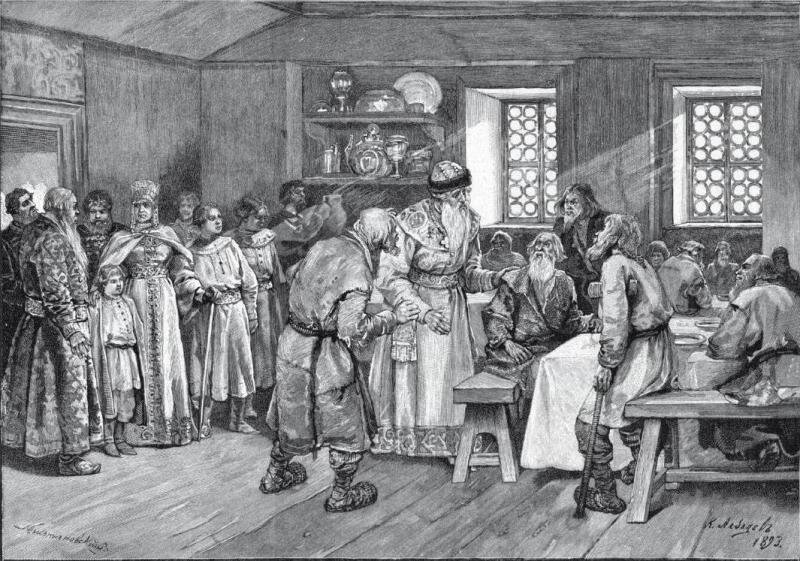 Князь Михаил Тверской, покидая мир, угощает нищую братию в своих палатах.