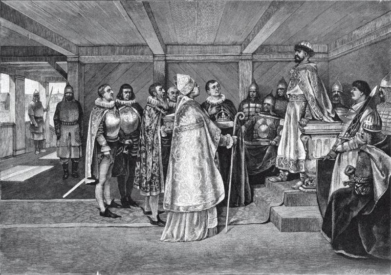 Папский нунций подносит князю Даниилу Галицкому королевскую корону.