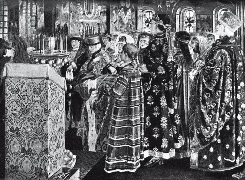 Боярская свадьба. Молодых ведут в опочивальню.