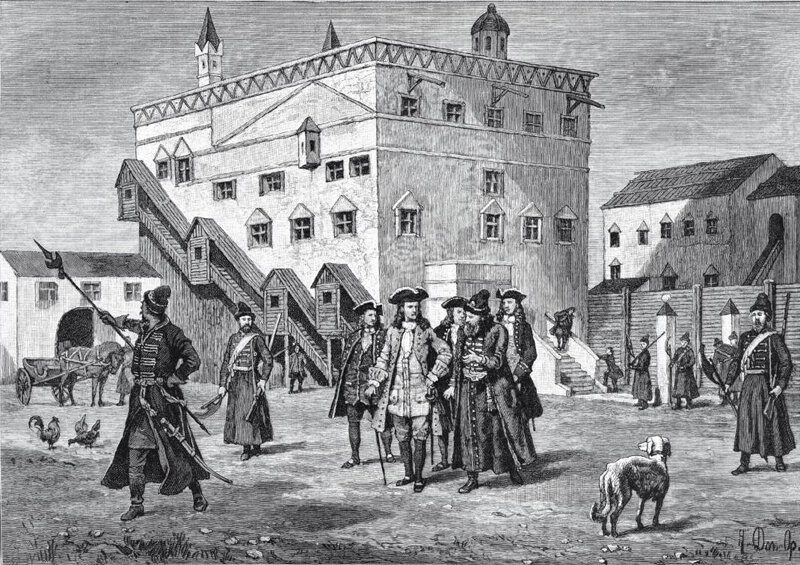 Прогулка посла во дворе Посольского дома в Москве в XVII веке