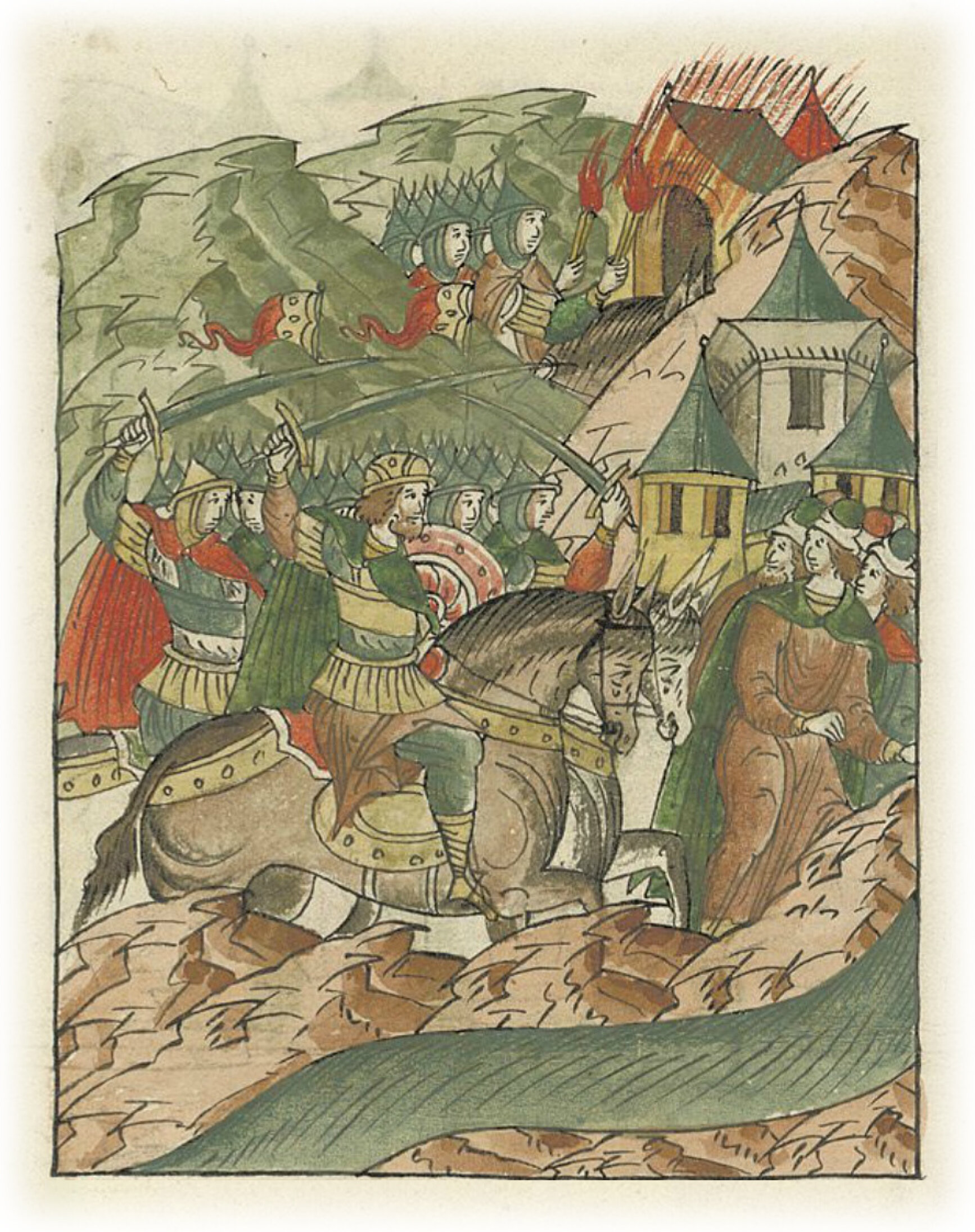 Языки говорят воеводам царя Ивана Васильевича, что магистр окопался большим рвом вокруг города Рындола, бьет из пушек и пищалей и приступает к Рындолу.