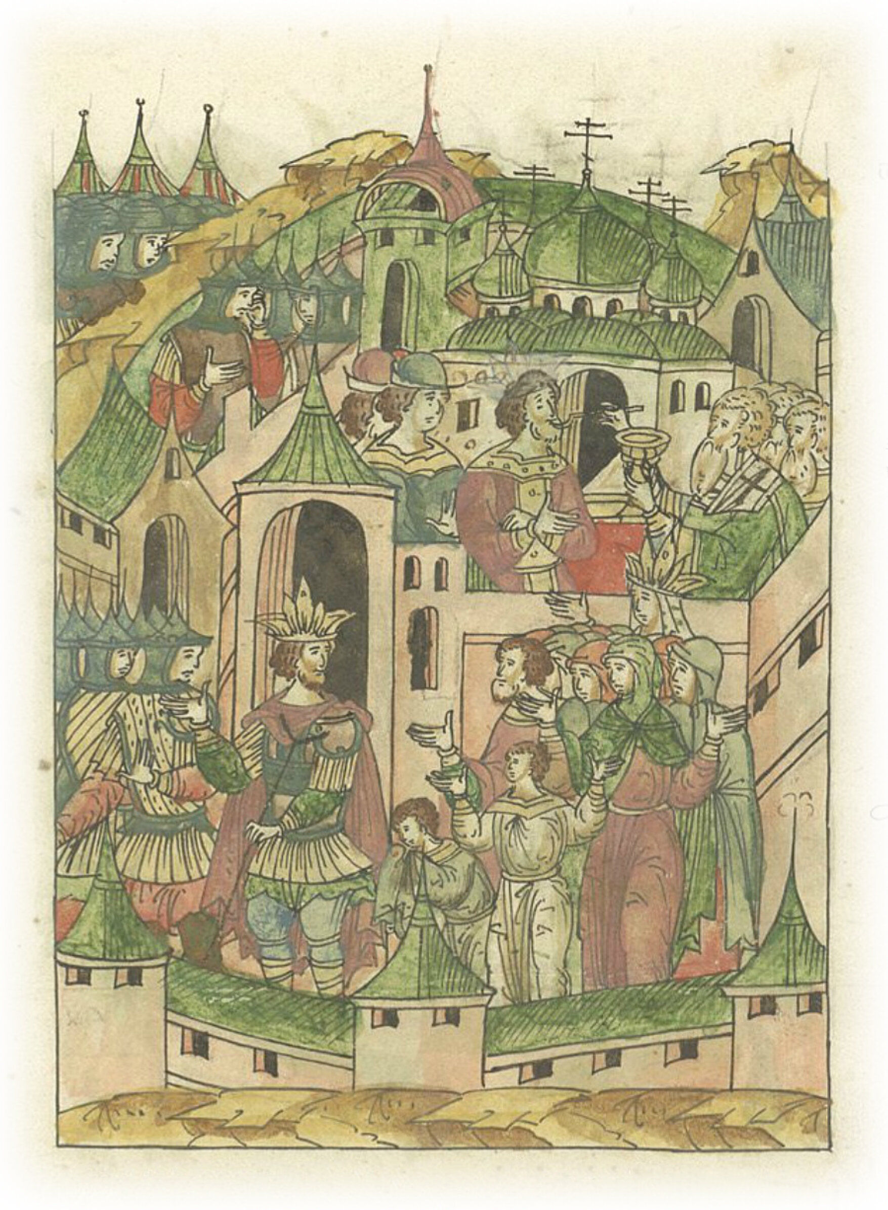 Ругодивские посадники Яким и Захар приезжают в Москву. Воеводы царя Ивана Васильевича Алексей Адашев и Иван Михайлов сообщают им, что государь пожалует их, если сдадут его воеводам помимо Ругодива Вышгород.