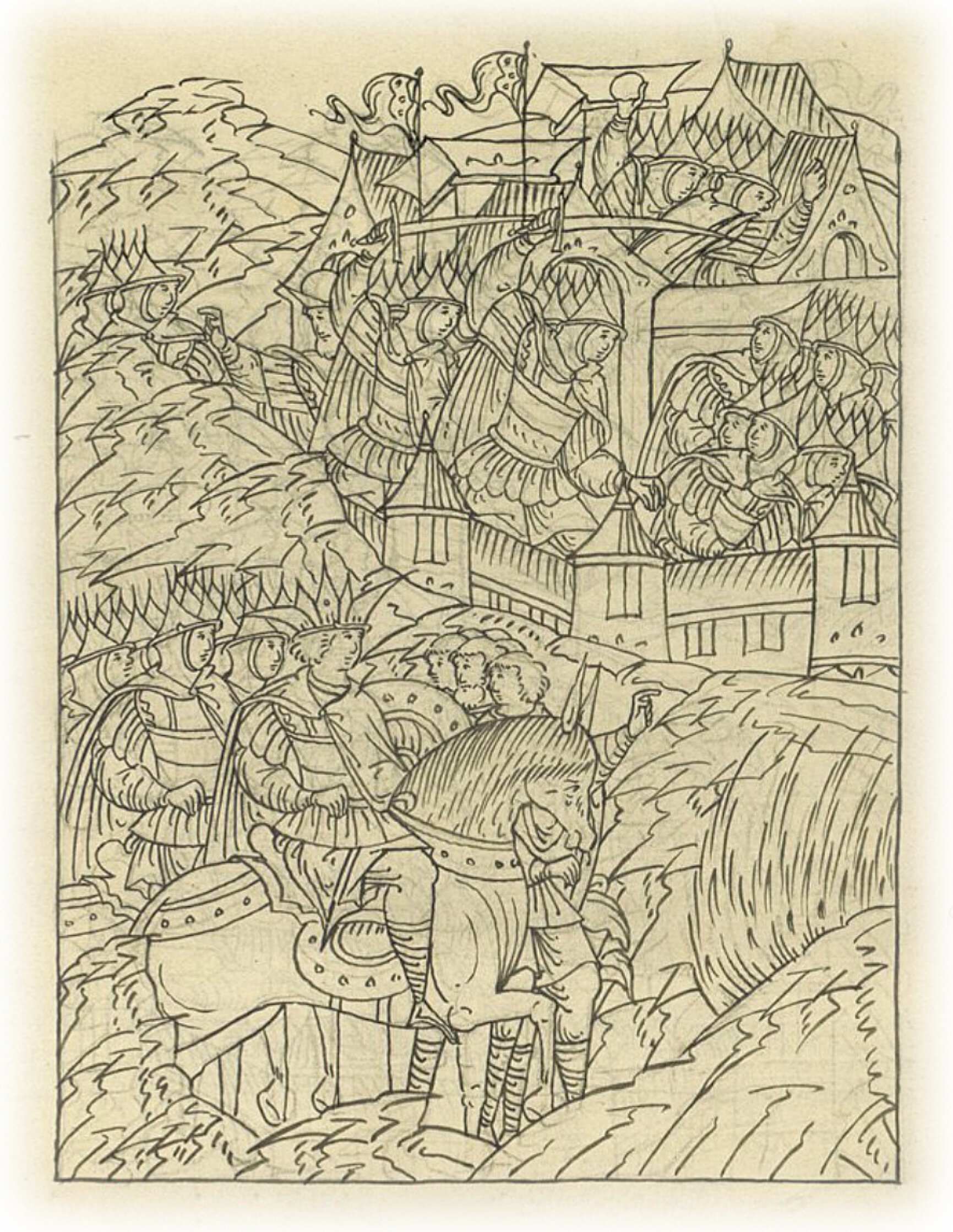 Языки говорят воеводам царя Ивана Васильевича, что магистр окопался большим рвом вокруг города Рындола, бьет из пушек и пищалей и приступает к Рындолу.