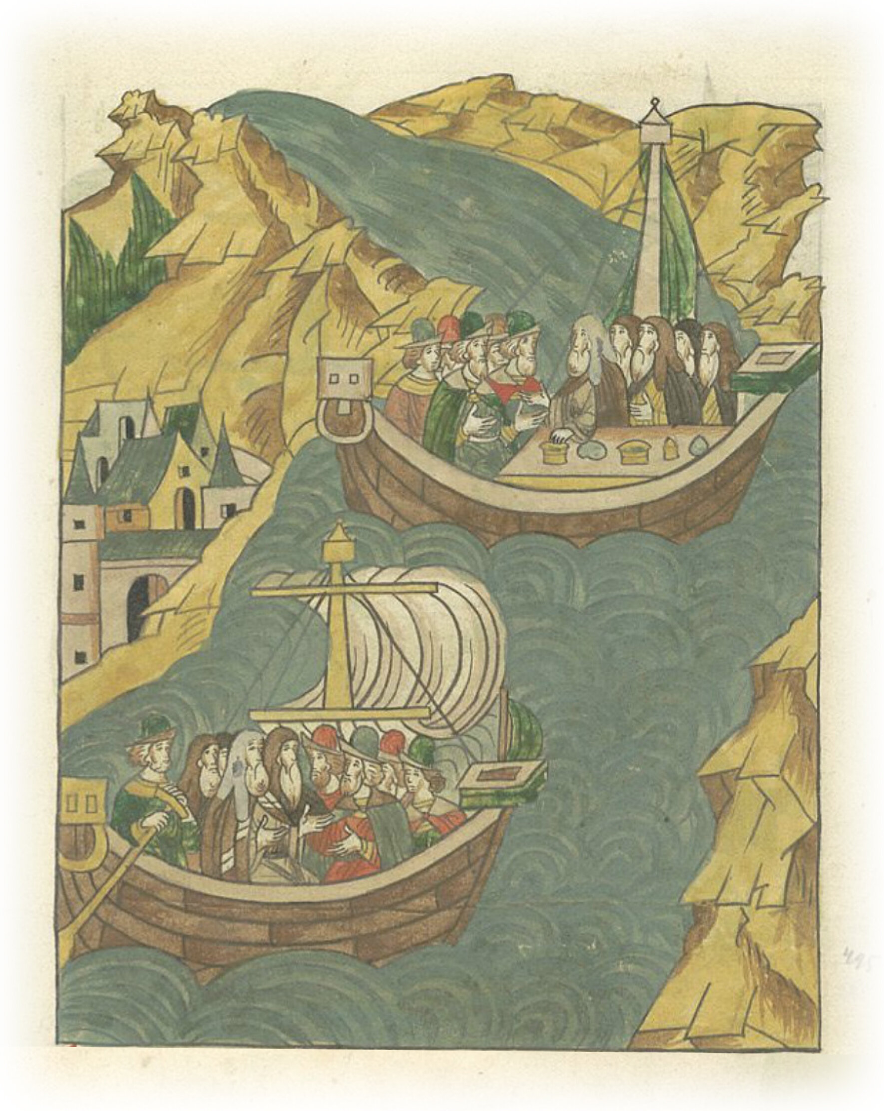 О походе митрополита Пимена в Царьград со Смоленским владыкой Михаилом и Спасским архимандритом Сергием. Проплывают город Диополь.
