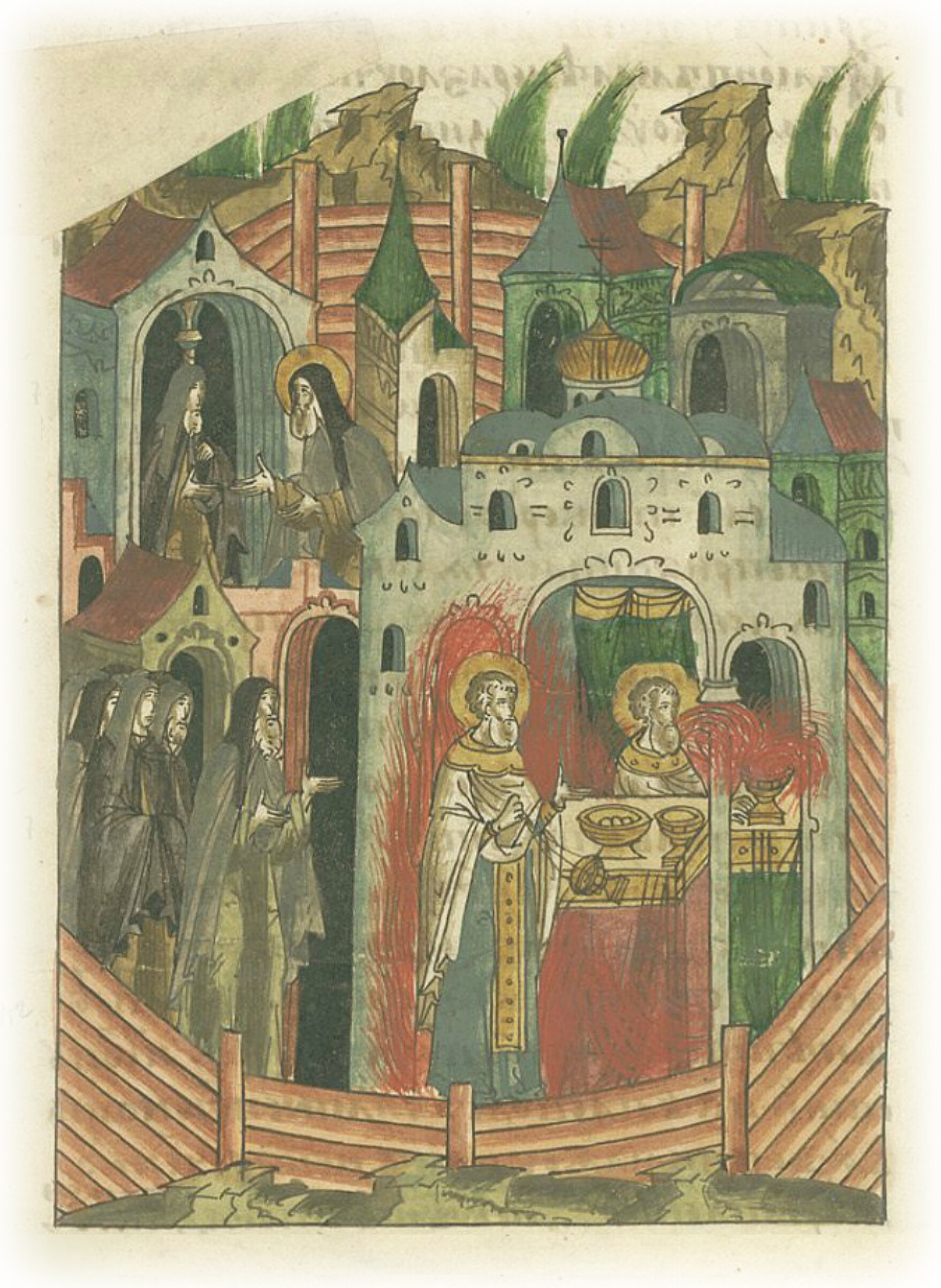Повесть о преподобном Сергии Радонежском. Видение преподобному Сергию и его ученику Симону во время литургии.