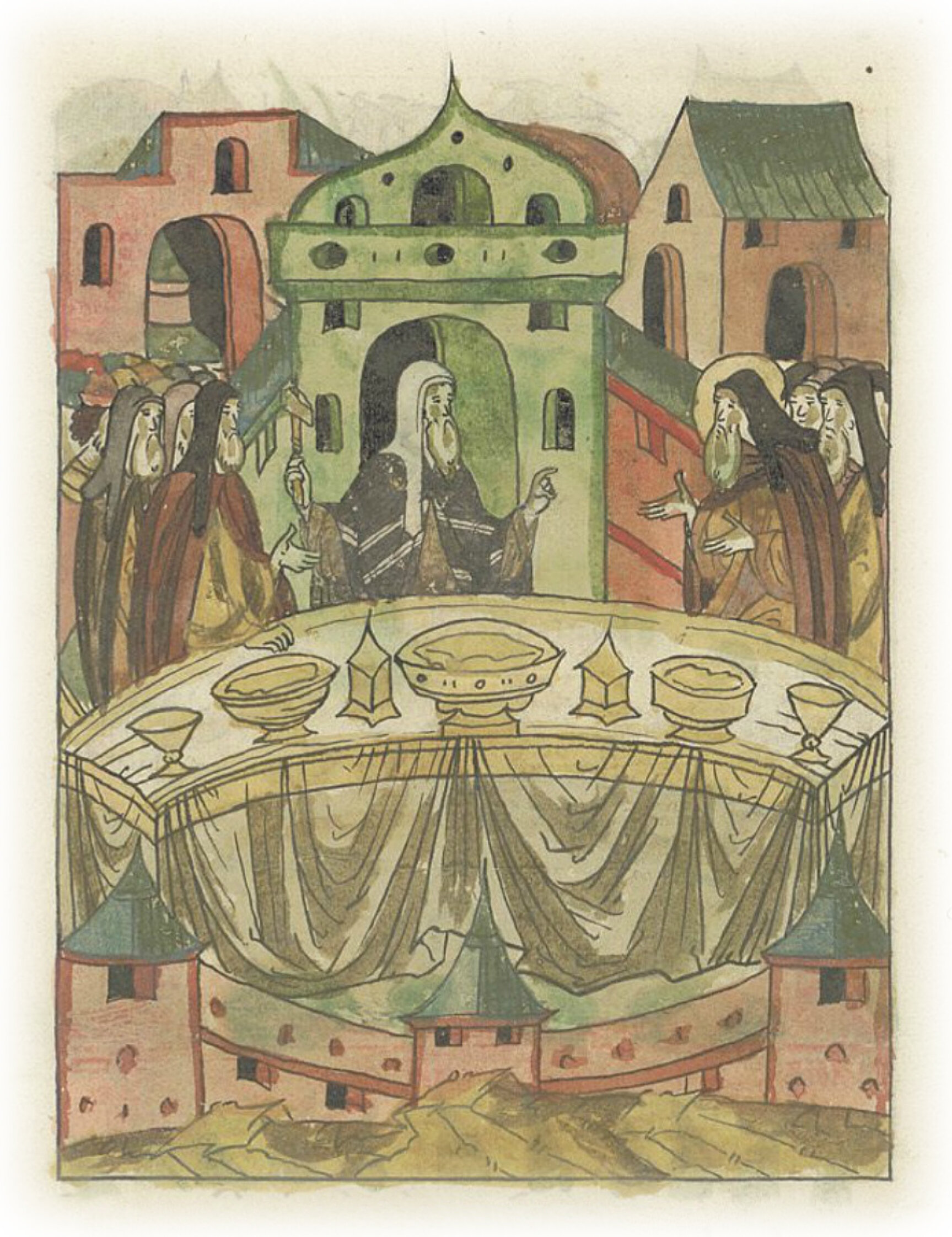 Тогда патриарх, не стерпев этих слов, взял кусок мяса и сказал: «Не помолчишь ли, старец, чтобы не ударил я тебя этим куском». И отвечал старец: «Я, господин мой владыка честный, видел многие твои милости, которые оказал ты мне, и поэтому надеялся, что могу высказать свое мнение; но если же ты не велишь, не стану говорить».