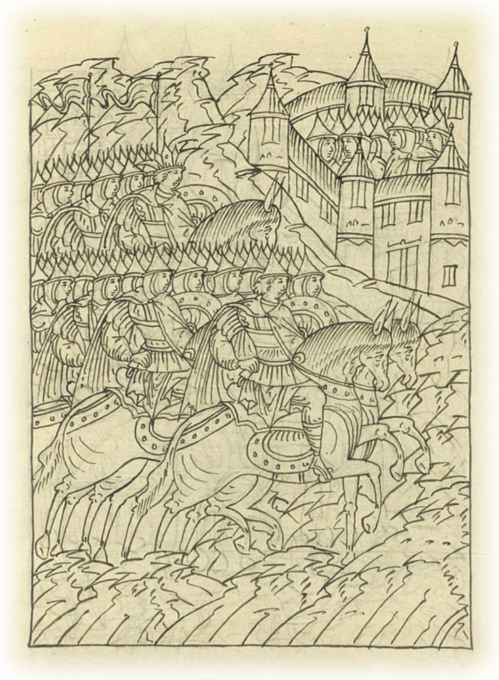 Языки говорят воеводам царя Ивана Васильевича, что магистр окопался большим рвом вокруг города Рындола, бьет из пушек и пищалей и приступает к Рындолу.