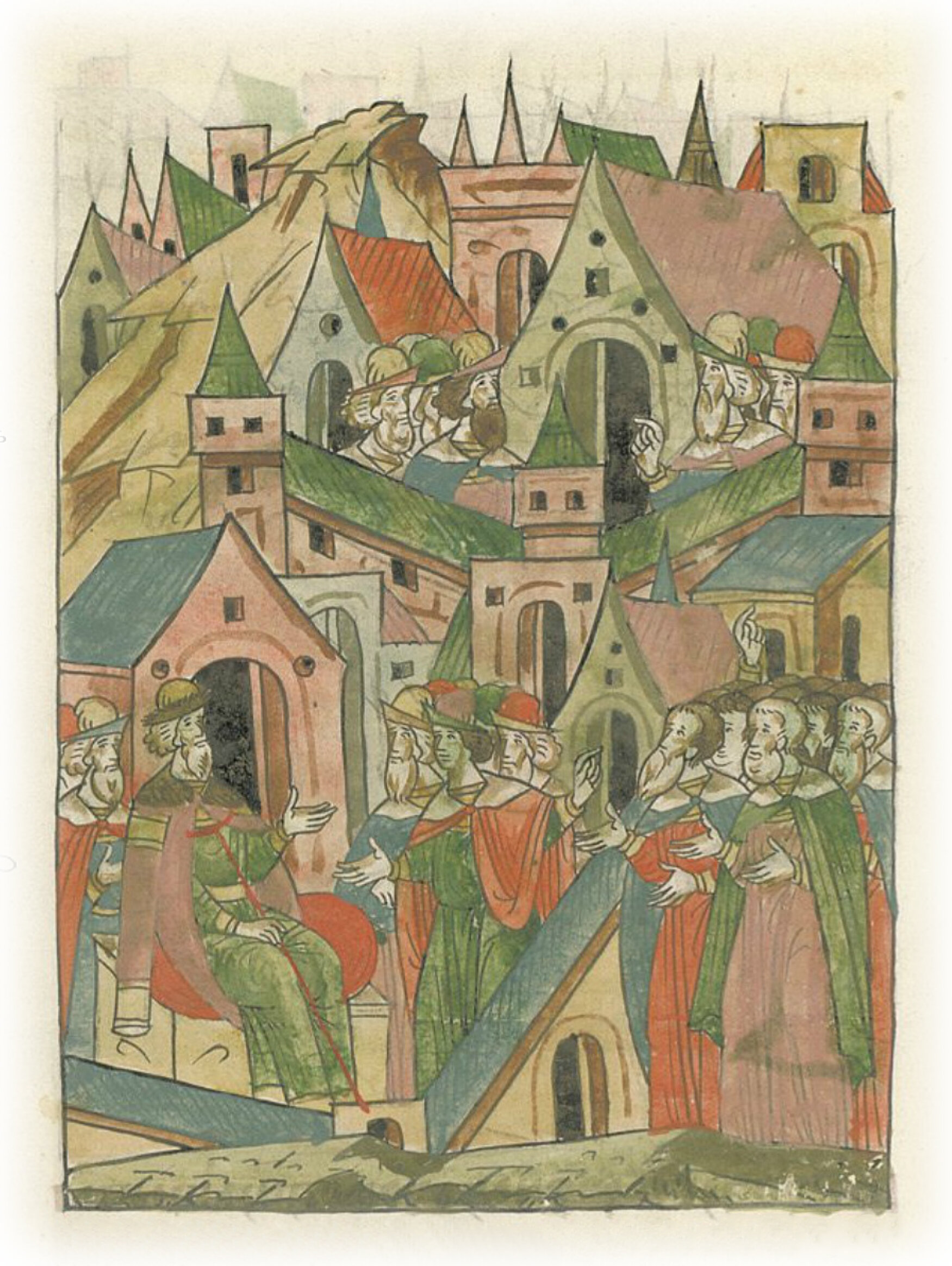 Многие новгородцы, жалобщики, зажиточные люди, рушане, монастырские и прочие из ближних пределов Новгорода приходят бить челом великому князю, некоторые просить приставов, другие с жалобами на новгородцев же.