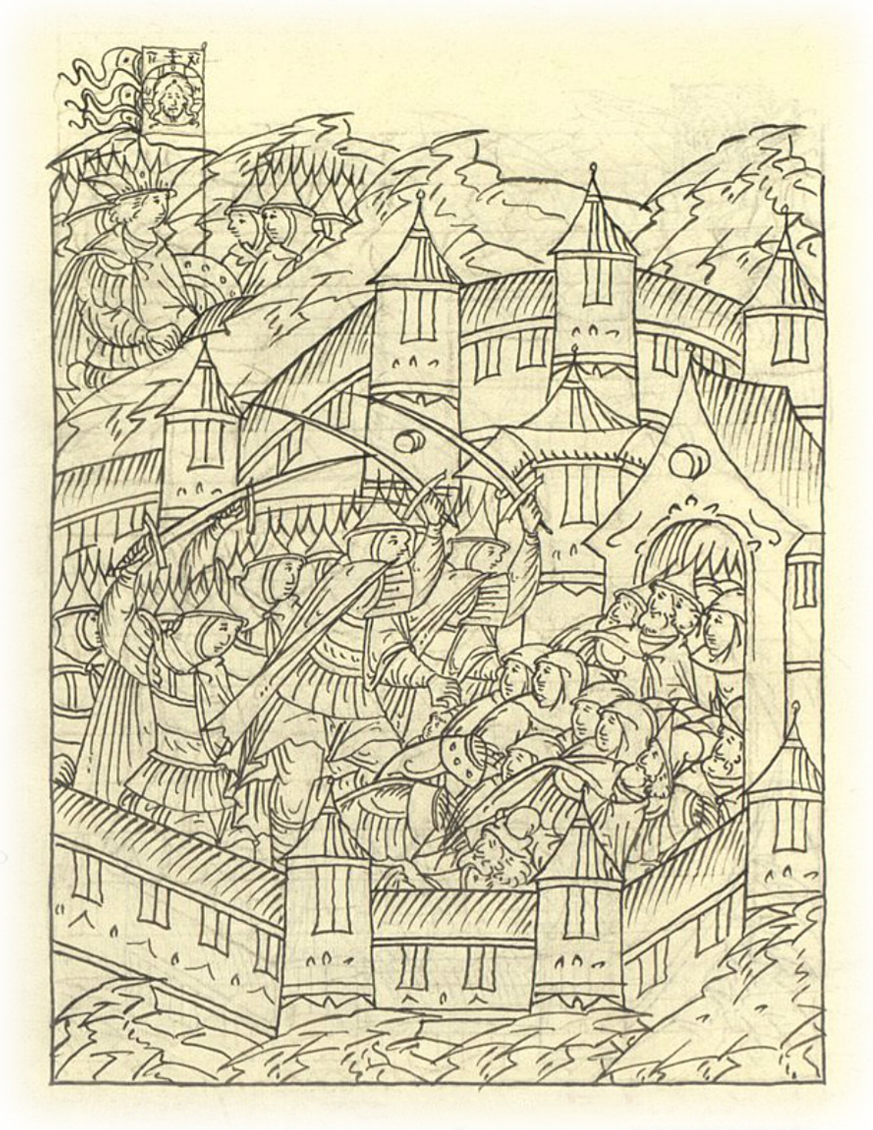 Воины же православные приблизились к Цареву двору и секли нещадно нечестивых мужей и жен, по долинам текли (реки) крови.