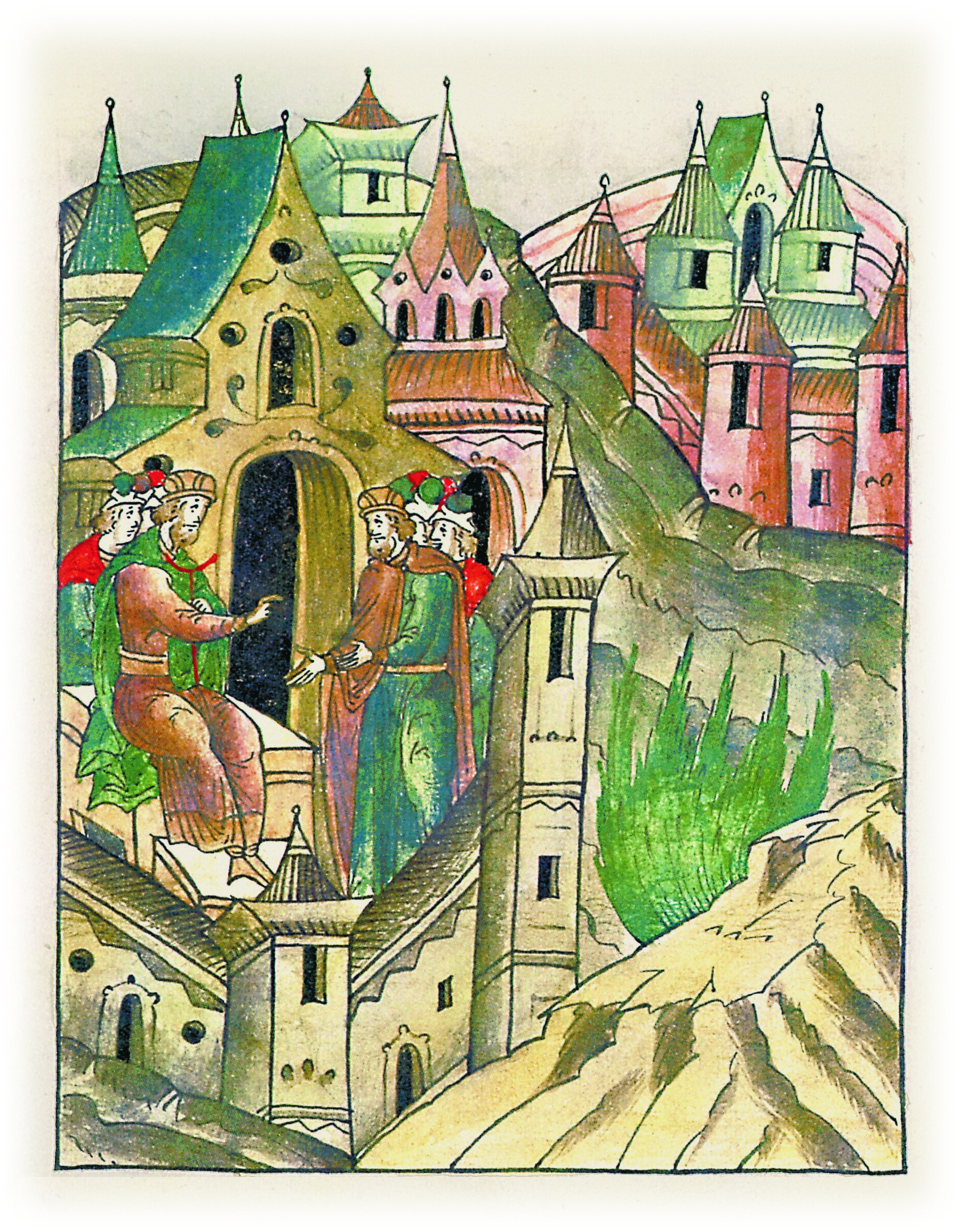 Ругодивские посадники Яким и Захар приезжают в Москву. Воеводы царя Ивана Васильевича Алексей Адашев и Иван Михайлов сообщают им, что государь пожалует их, если сдадут его воеводам помимо Ругодива Вышгород.