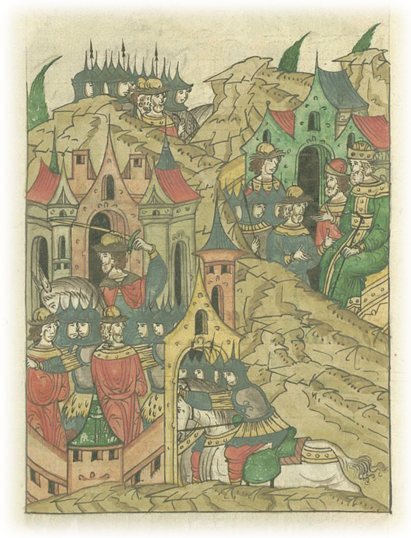 Языки говорят воеводам царя Ивана Васильевича, что магистр окопался большим рвом вокруг города Рындола, бьет из пушек и пищалей и приступает к Рындолу.