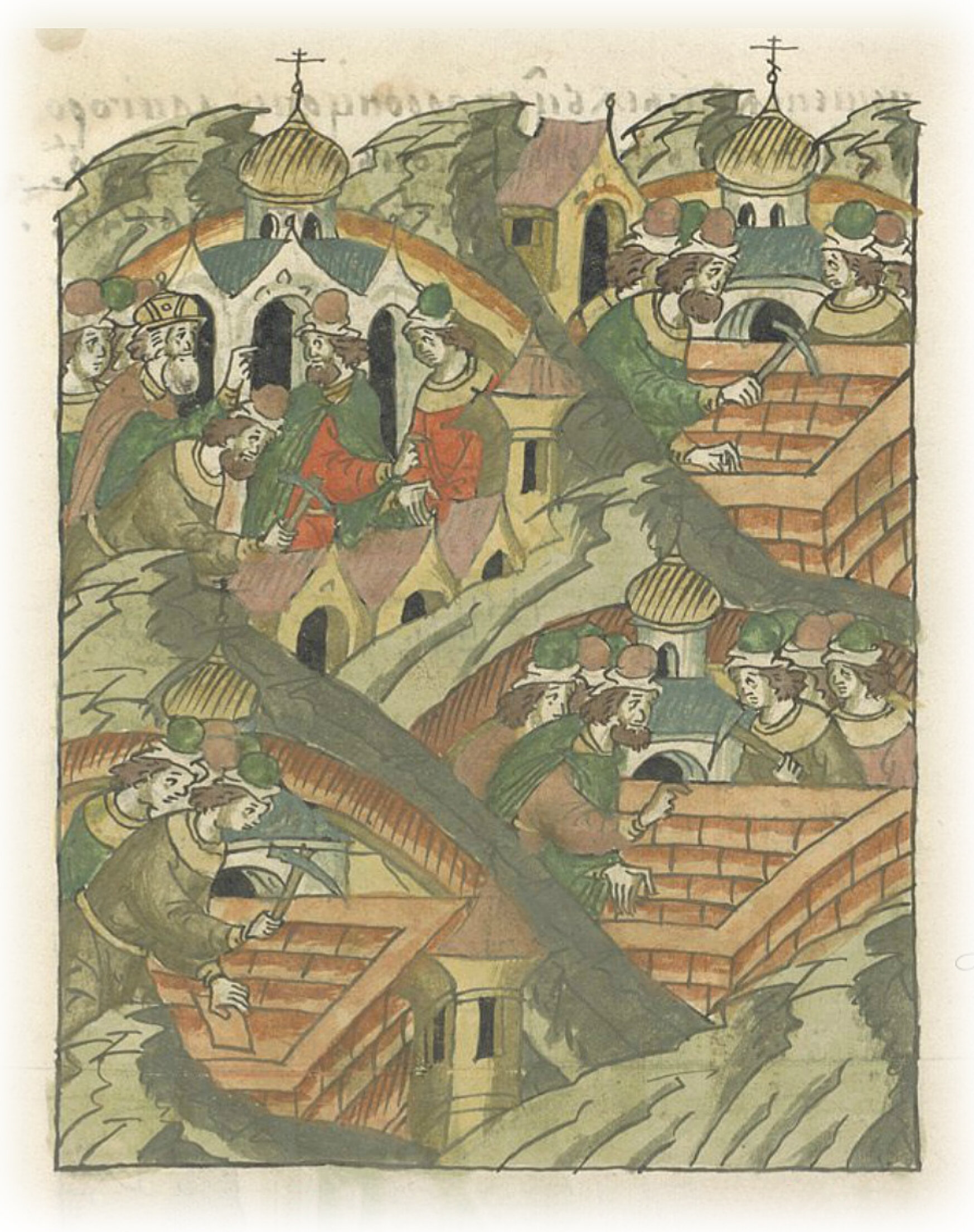 Заложены были церкви каменные на Москве. Той же весной благоверный и христолюбивый великий князь всея Руси Василий Иванович со многим желанием и с верою повелел заложить и делать церкви каменные и кирпичные на Москве: на Большом посаде за Торгом – церковь Введения пресвятой Богородицы, церковь Владимира святого – в садах, да церковь Благовещения святой Богородицы – в Воронцове, да в городе на своем дворе – церковь Рождества святой Богородицы с приделом святого Лазаря;