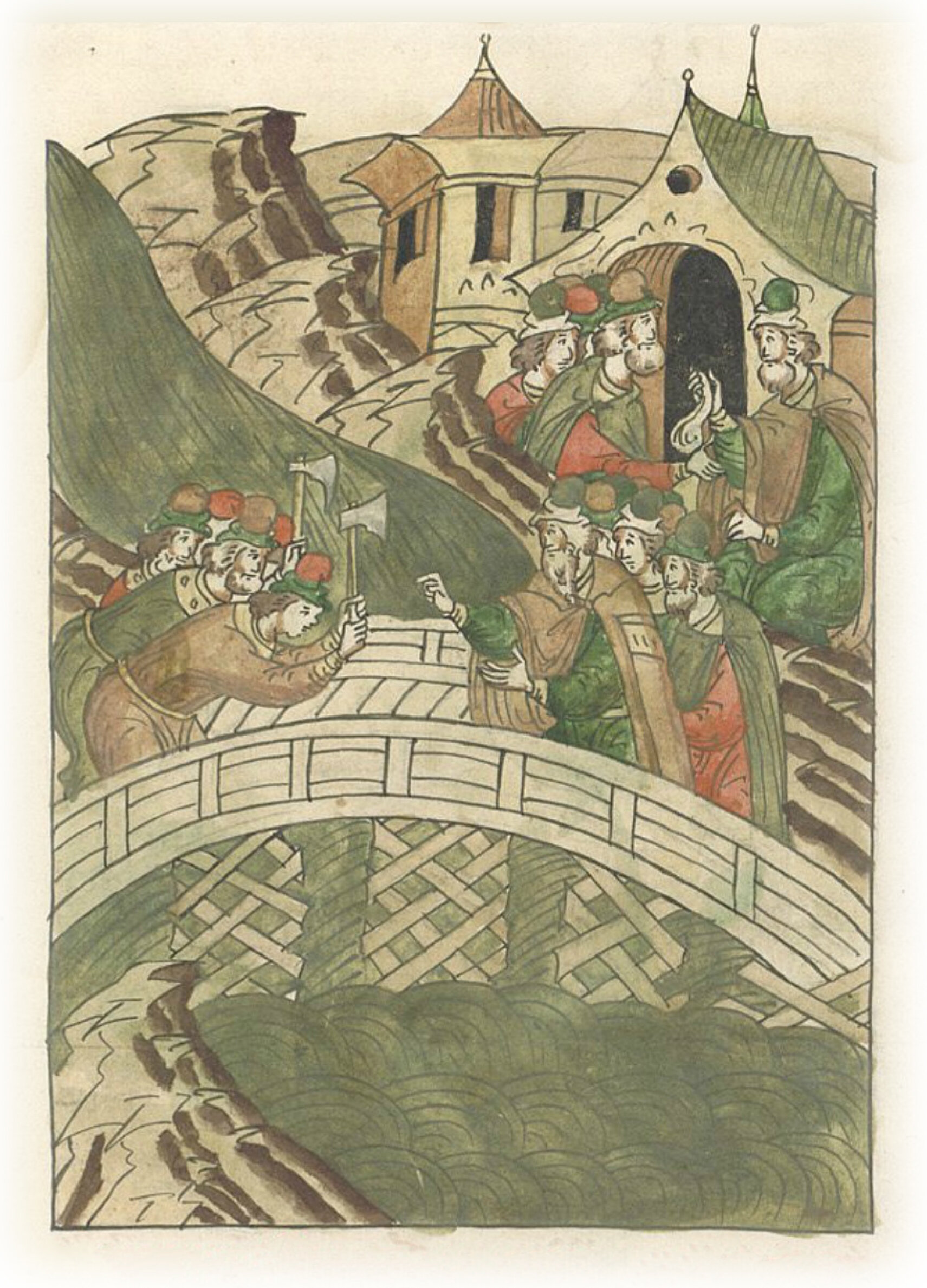 О великом мосте через Волхов в Великом Новгороде. Той же осенью поставили великий мост через Волхов, а дали от него из казны великого князя 200 рублей московских, а нарядником был Филат Бобровник.