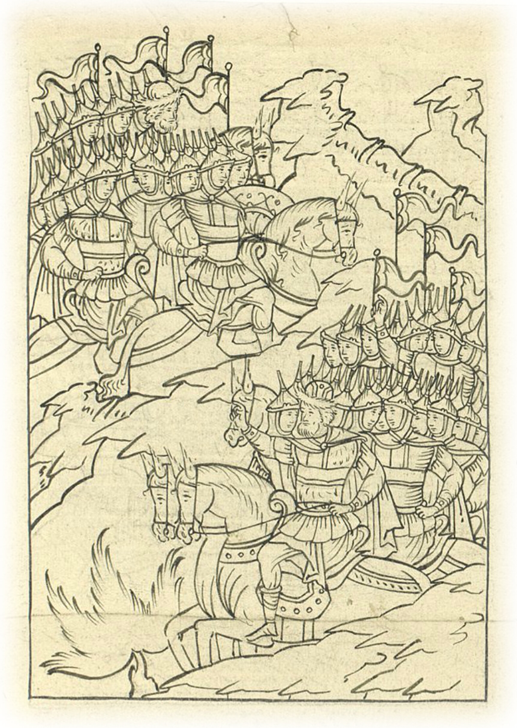 И полками пошел на князя Ивана. А князь Иван против князя Андрея людям великого князя воевод назначил и полки установил; и расставив полки, и возложив помощь на Бога, пошел против князя Андрея. И увидел князь Андрей полки великого князя, и не захотел с великого князя людьми биться.