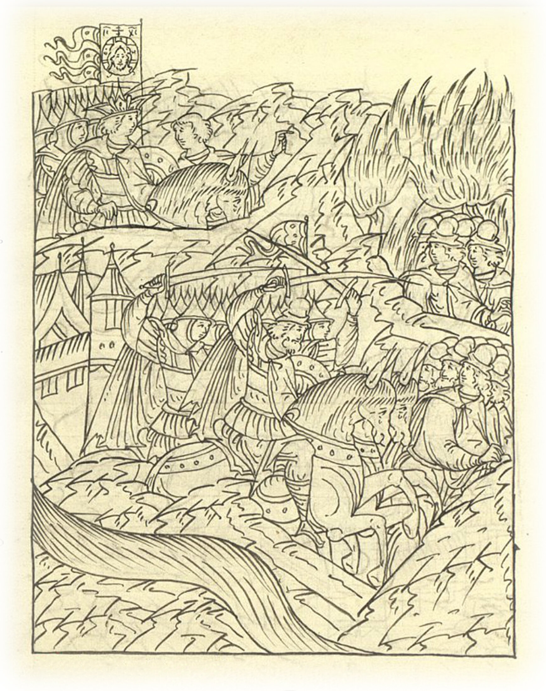 Языки говорят воеводам царя Ивана Васильевича, что магистр окопался большим рвом вокруг города Рындола, бьет из пушек и пищалей и приступает к Рындолу.