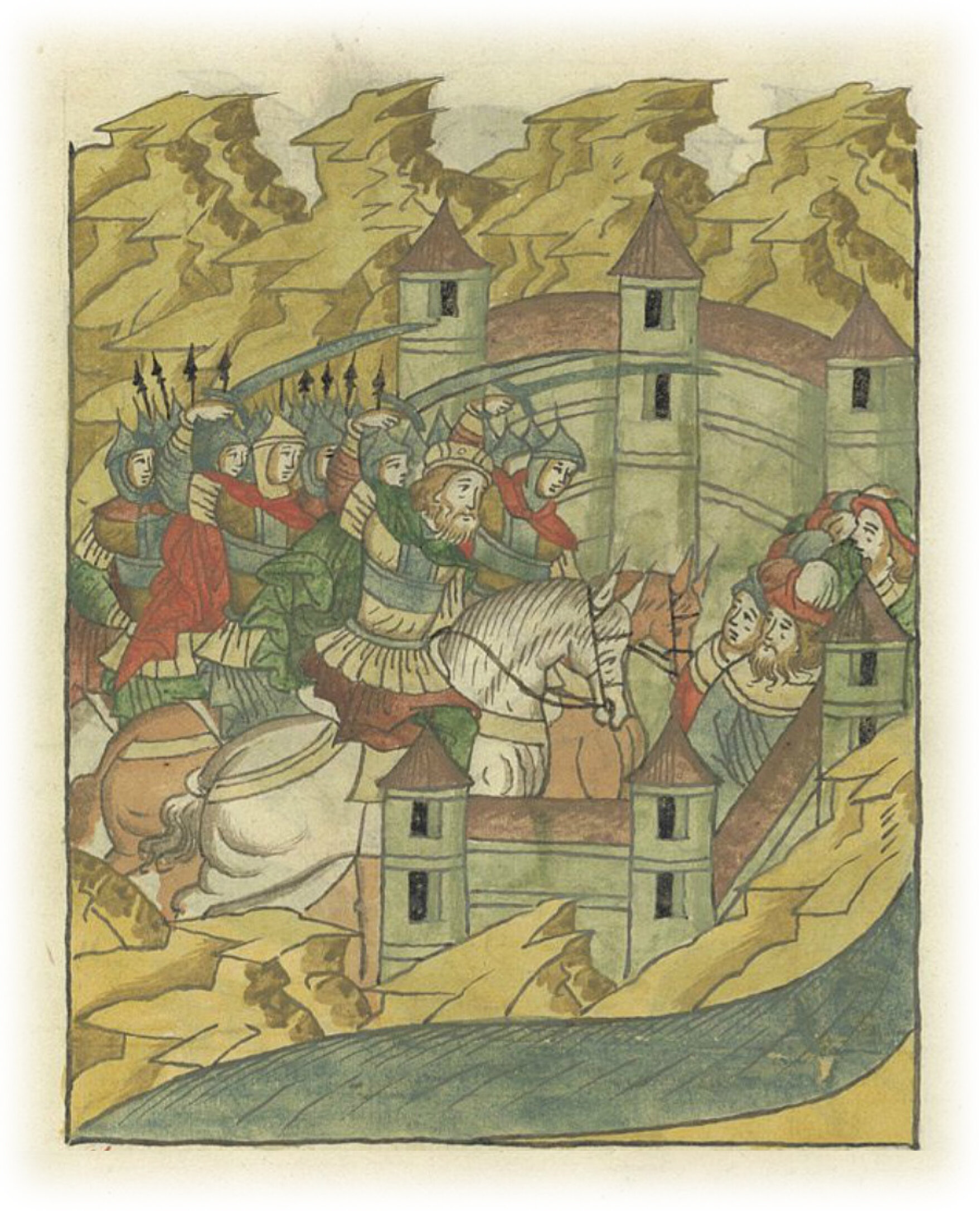 Языки говорят воеводам царя Ивана Васильевича, что магистр окопался большим рвом вокруг города Рындола, бьет из пушек и пищалей и приступает к Рындолу.