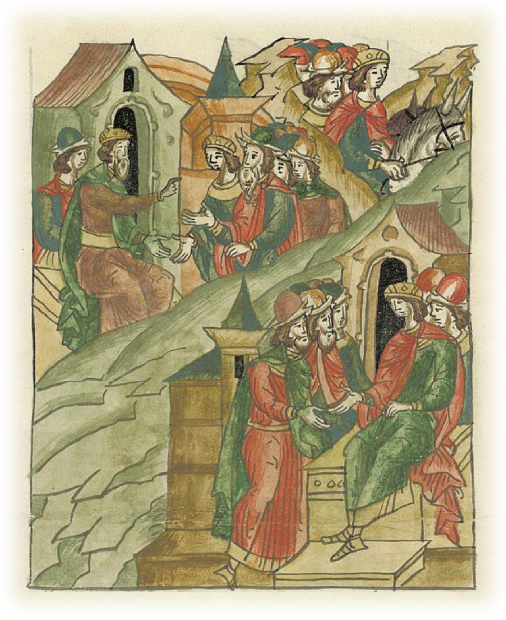 Ругодивские посадники Яким и Захар приезжают в Москву. Воеводы царя Ивана Васильевича Алексей Адашев и Иван Михайлов сообщают им, что государь пожалует их, если сдадут его воеводам помимо Ругодива Вышгород.