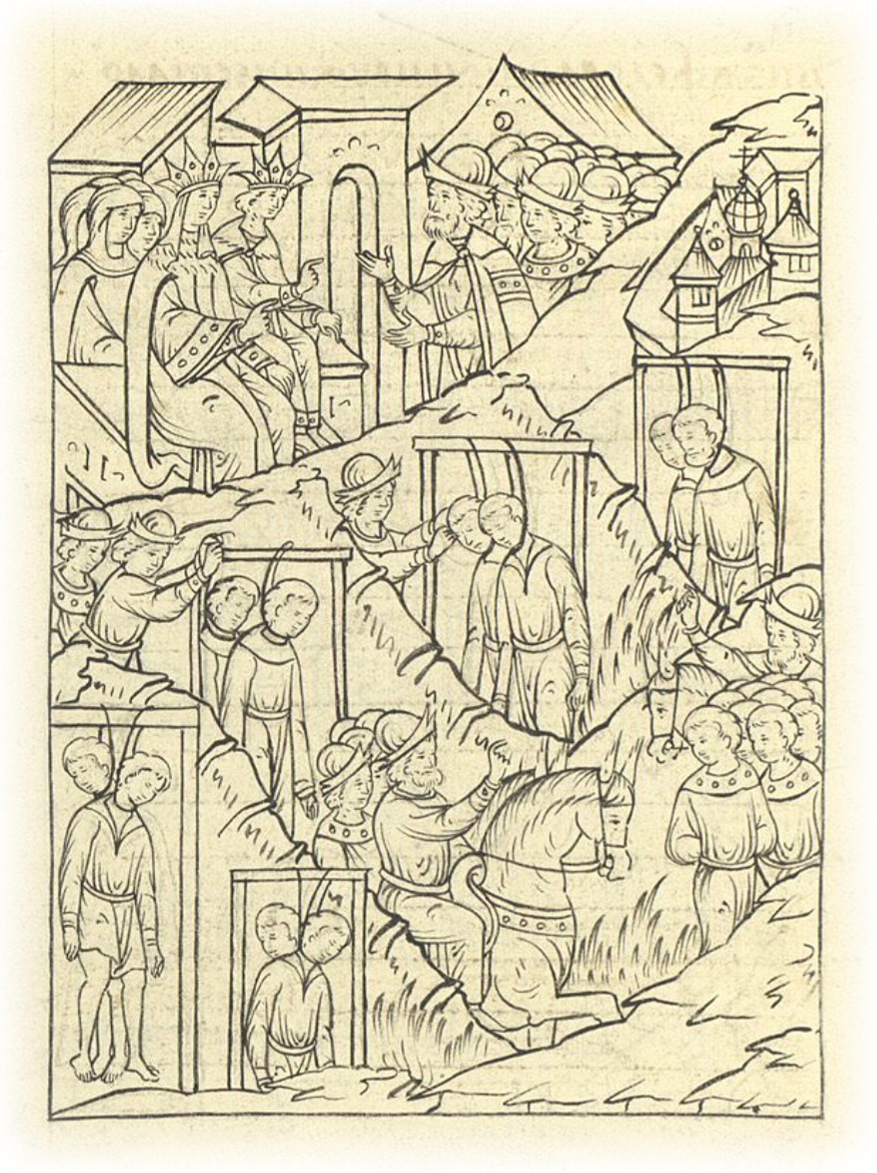 Да, избив кнутом, велели князь великий и мать его великая княгиня тех детей боярских казнить смертной казнью, вешать по новгородской дороге, не вместе, а до Новгорода.