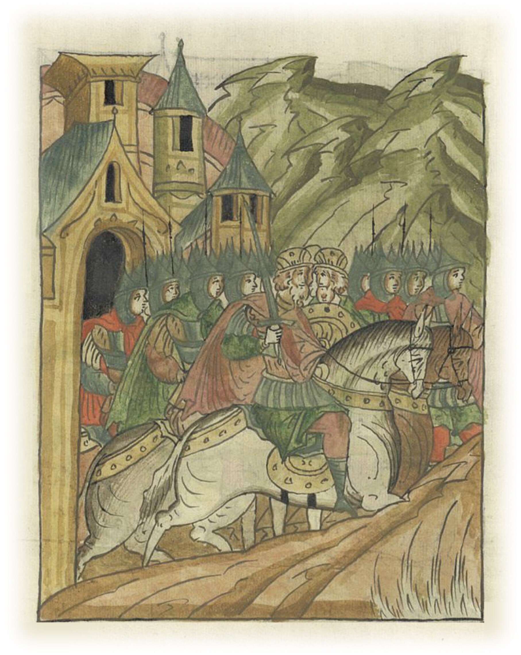 А великий князь Юрий Всеволодович со всеми братьями своими вышел из Владимира с многою силой, с могучими полками; ибо было множество собрано и пеших поселян.
