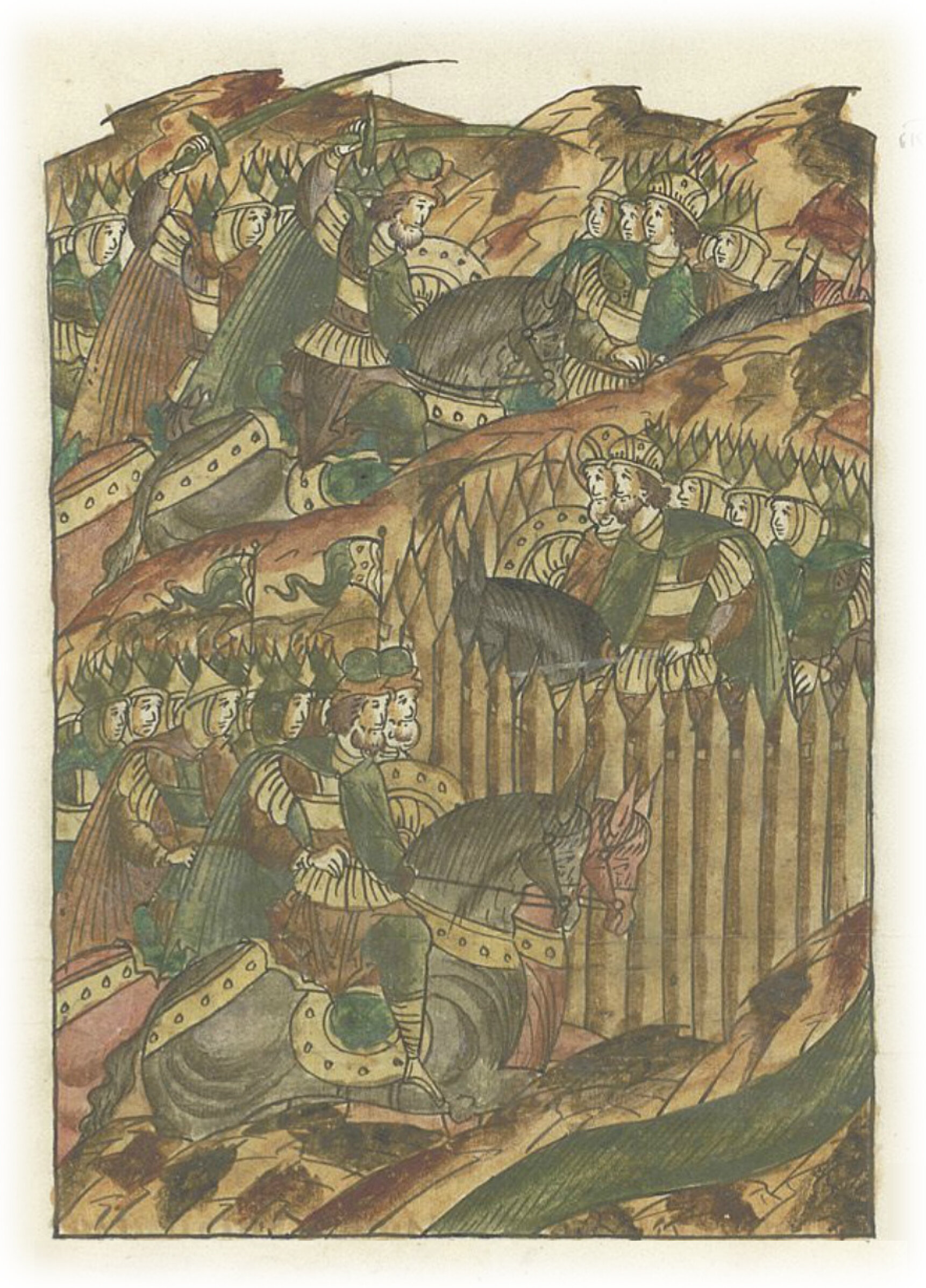Языки говорят воеводам царя Ивана Васильевича, что магистр окопался большим рвом вокруг города Рындола, бьет из пушек и пищалей и приступает к Рындолу.