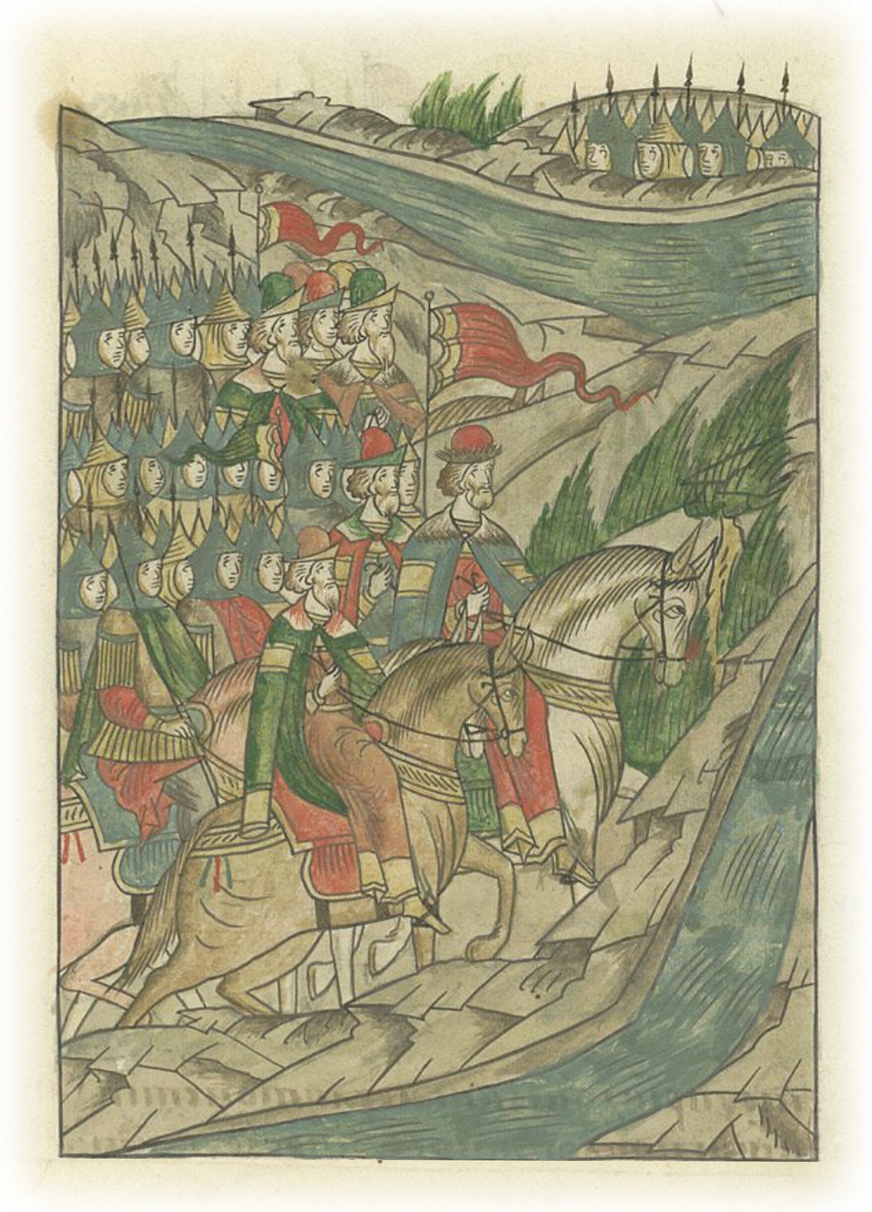 Воеводы царя Ивана Васильевича, разделившись, идут в погоню за царем Емгурчеем.