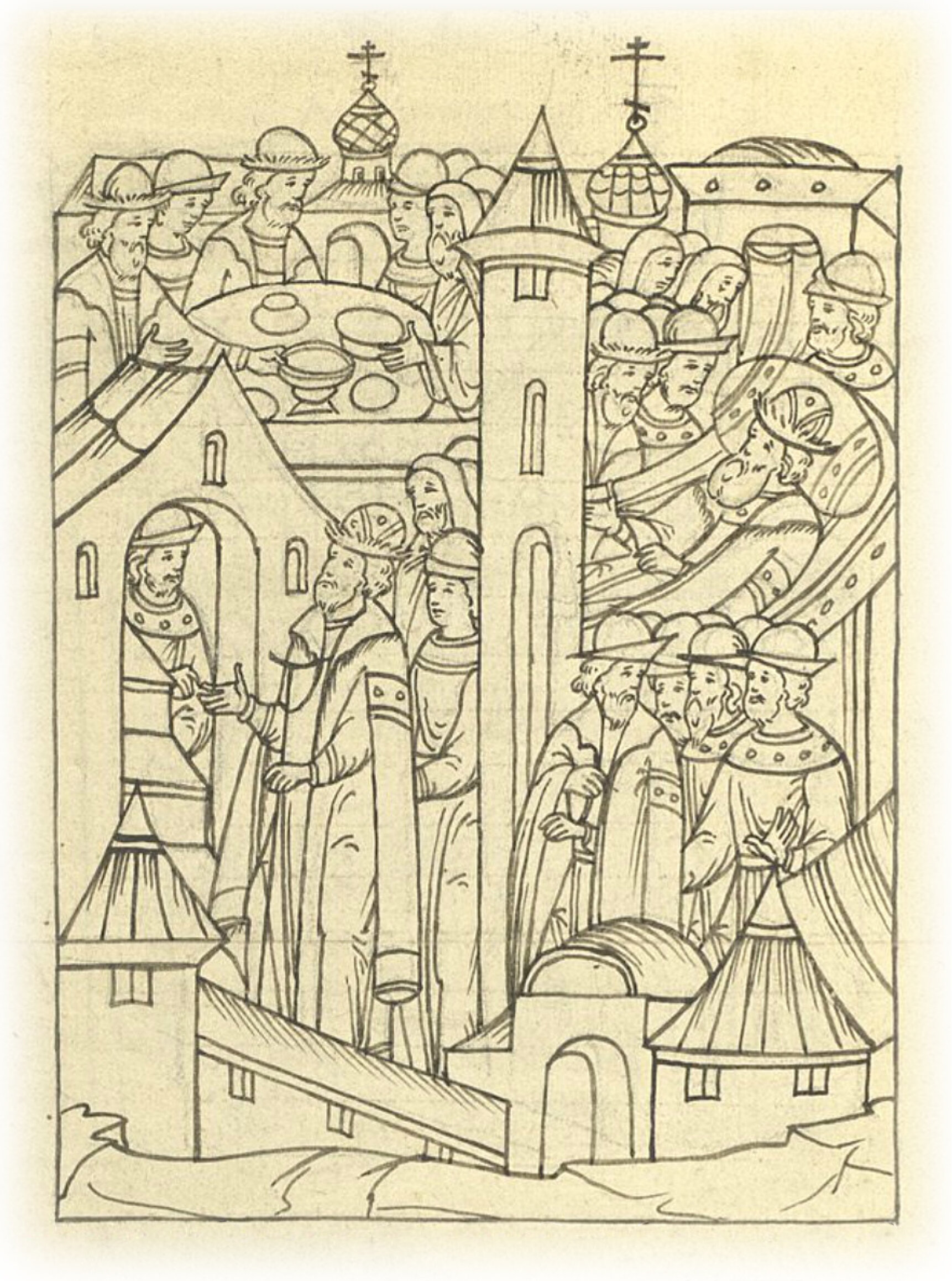 Тогда князь великий послал брата своего князя Андрея Ивановича с боярами своими, чтобы сели за трапезу.