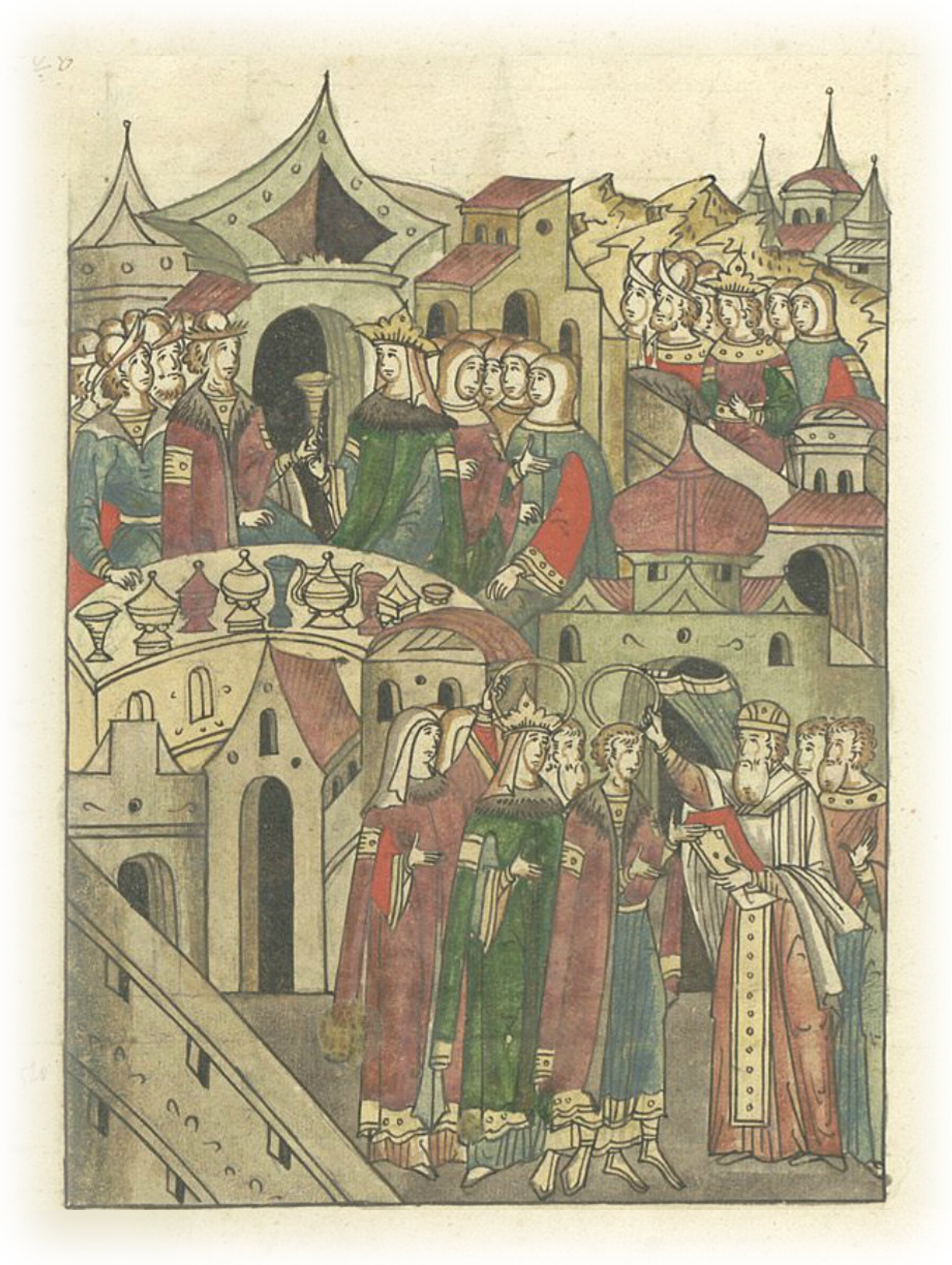 Женитьба князя Дмитрия Михайловича Тверского на дочери литовского князя Гедемина и их венчание в церкви святого Спаса в Твери епископом Варсонофием Тверским.
