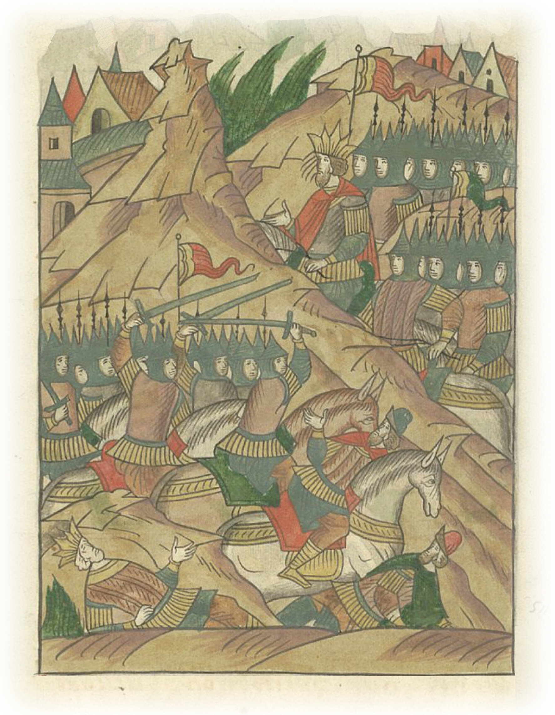 Языки говорят воеводам царя Ивана Васильевича, что магистр окопался большим рвом вокруг города Рындола, бьет из пушек и пищалей и приступает к Рындолу.