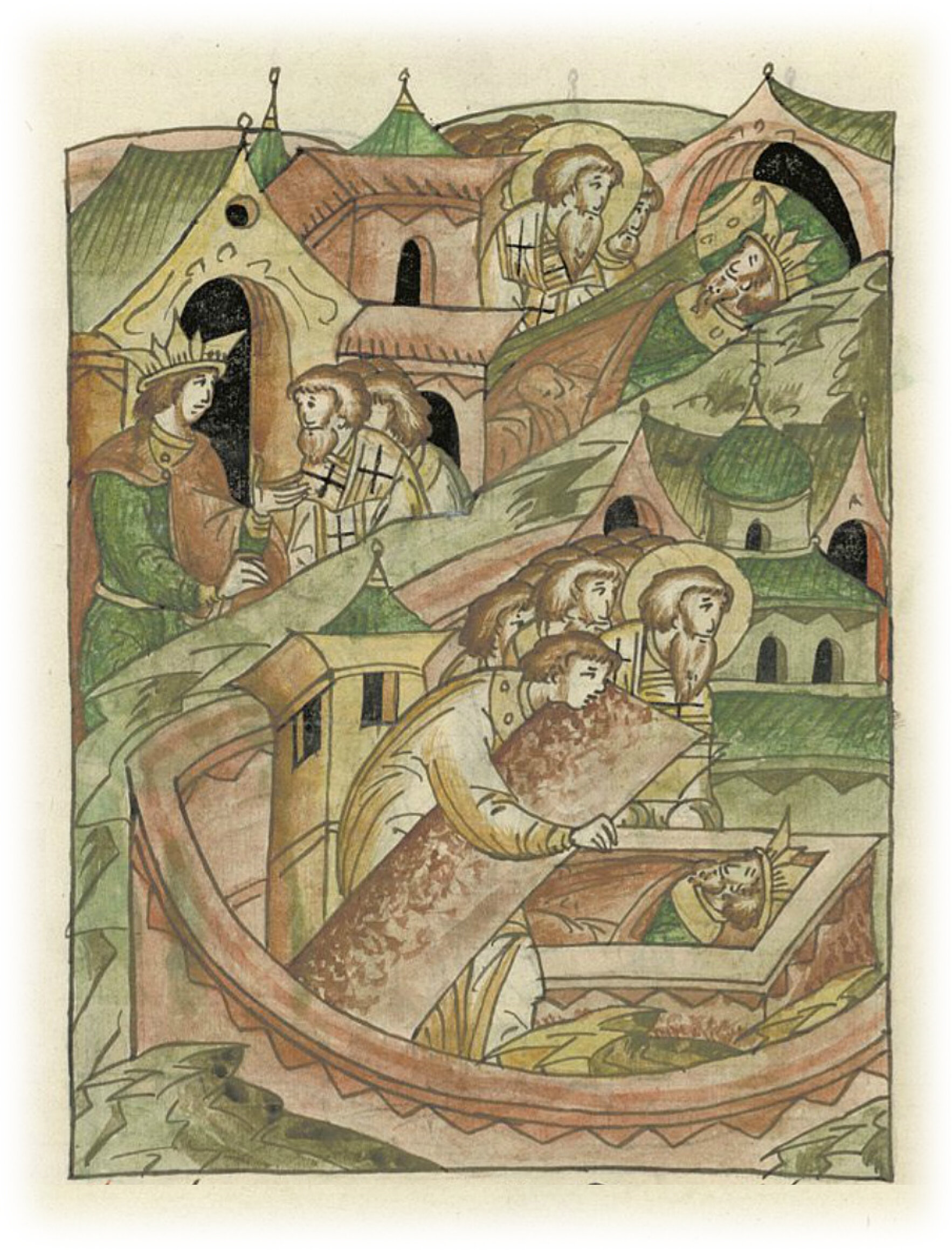 О Савве Сербском. Кончина короля Стефан, нареченного в иноках Симоном, на руках у своего брата архиепископа Саввы. Похороны Стефана в монастыре Пречистой Богородицы в Студенице.