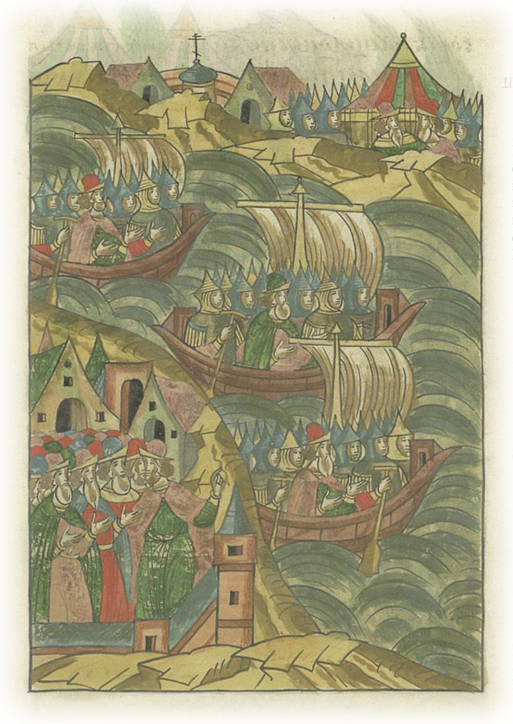 И в то же время послали рать свою в судах озером Ильмень на передние полки, на воевод великого князя, которые пришли на Коростынь и стояли на берегу у озера Ильмень.
