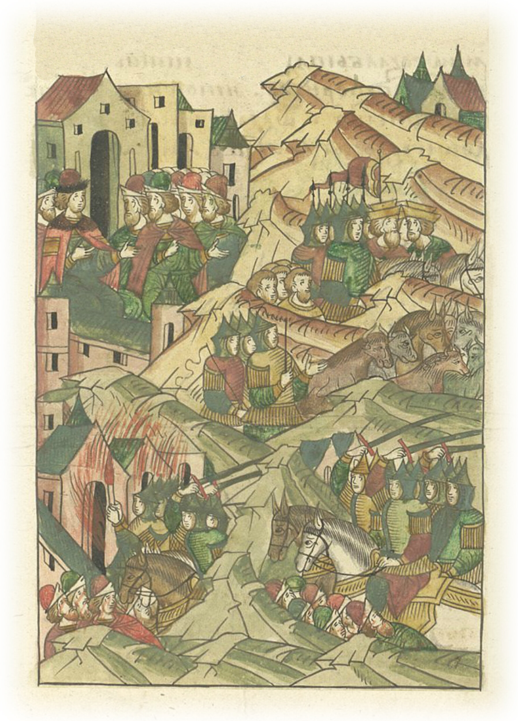 Языки говорят воеводам царя Ивана Васильевича, что магистр окопался большим рвом вокруг города Рындола, бьет из пушек и пищалей и приступает к Рындолу.