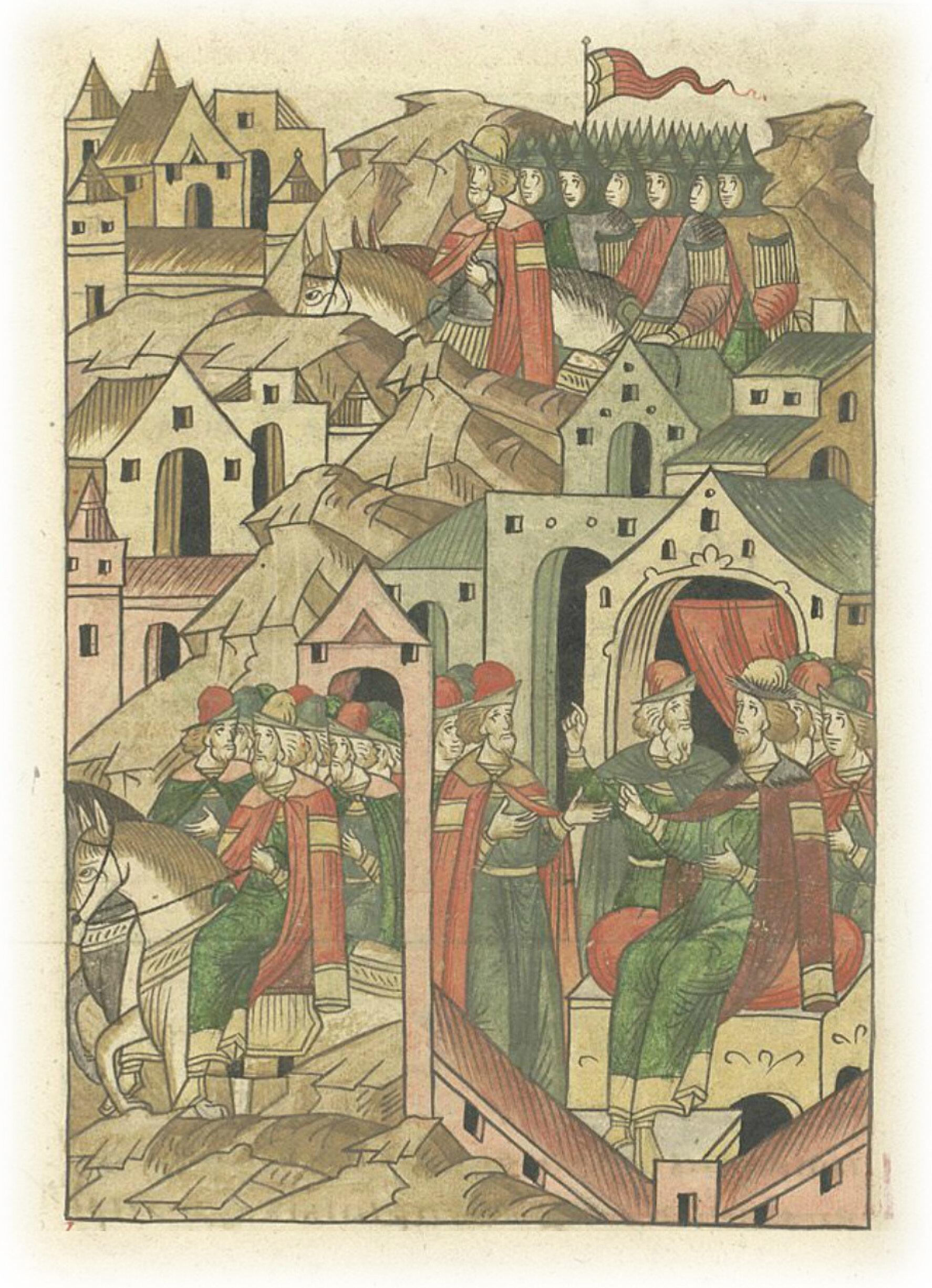 Ругодивские посадники Яким и Захар приезжают в Москву. Воеводы царя Ивана Васильевича Алексей Адашев и Иван Михайлов сообщают им, что государь пожалует их, если сдадут его воеводам помимо Ругодива Вышгород.