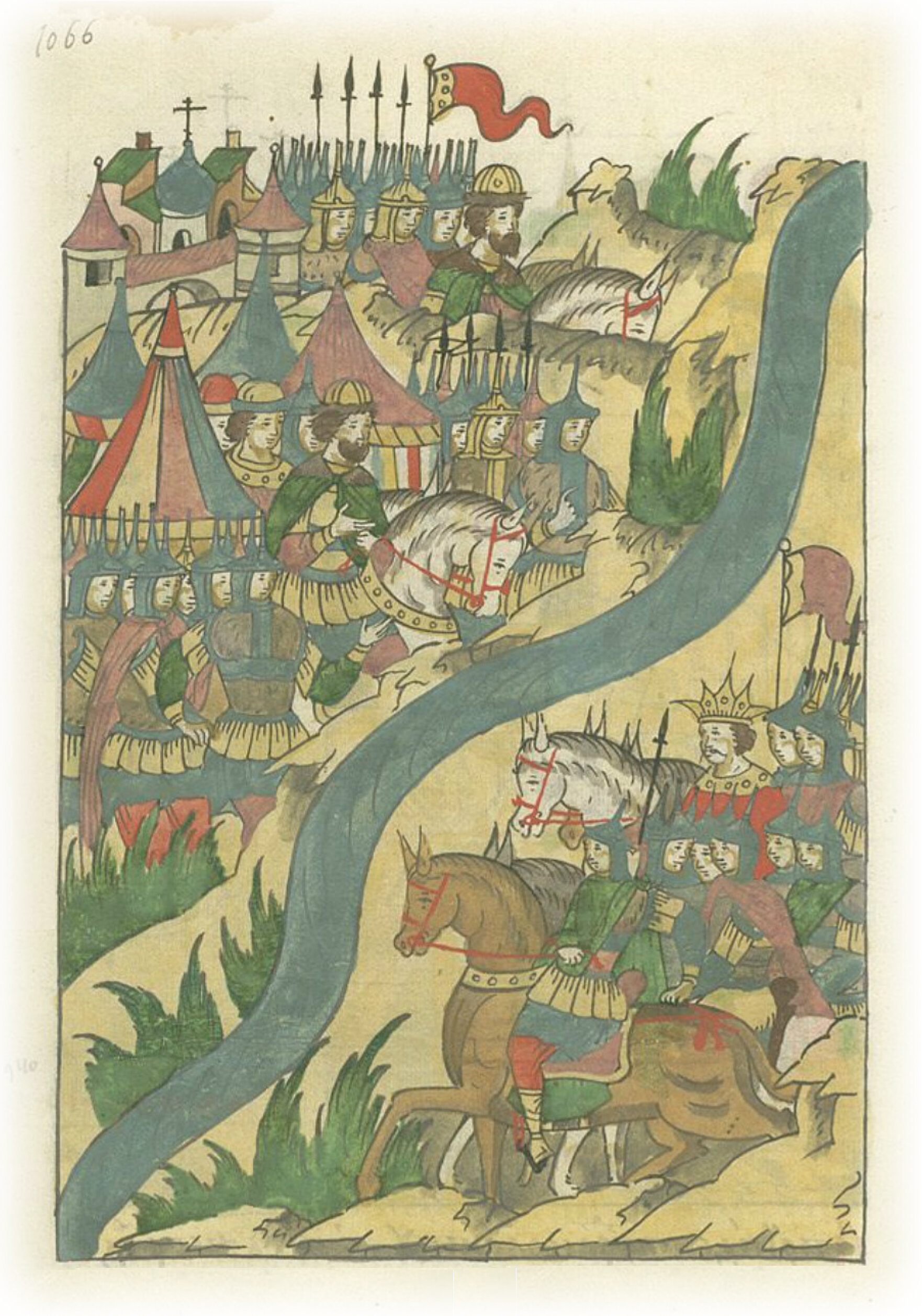 И оттуда пошли против безбожного и неверного Темир-Аксака, хвалящегося погубить православное христианство. И встал великий государь на берегу Оки-реки.