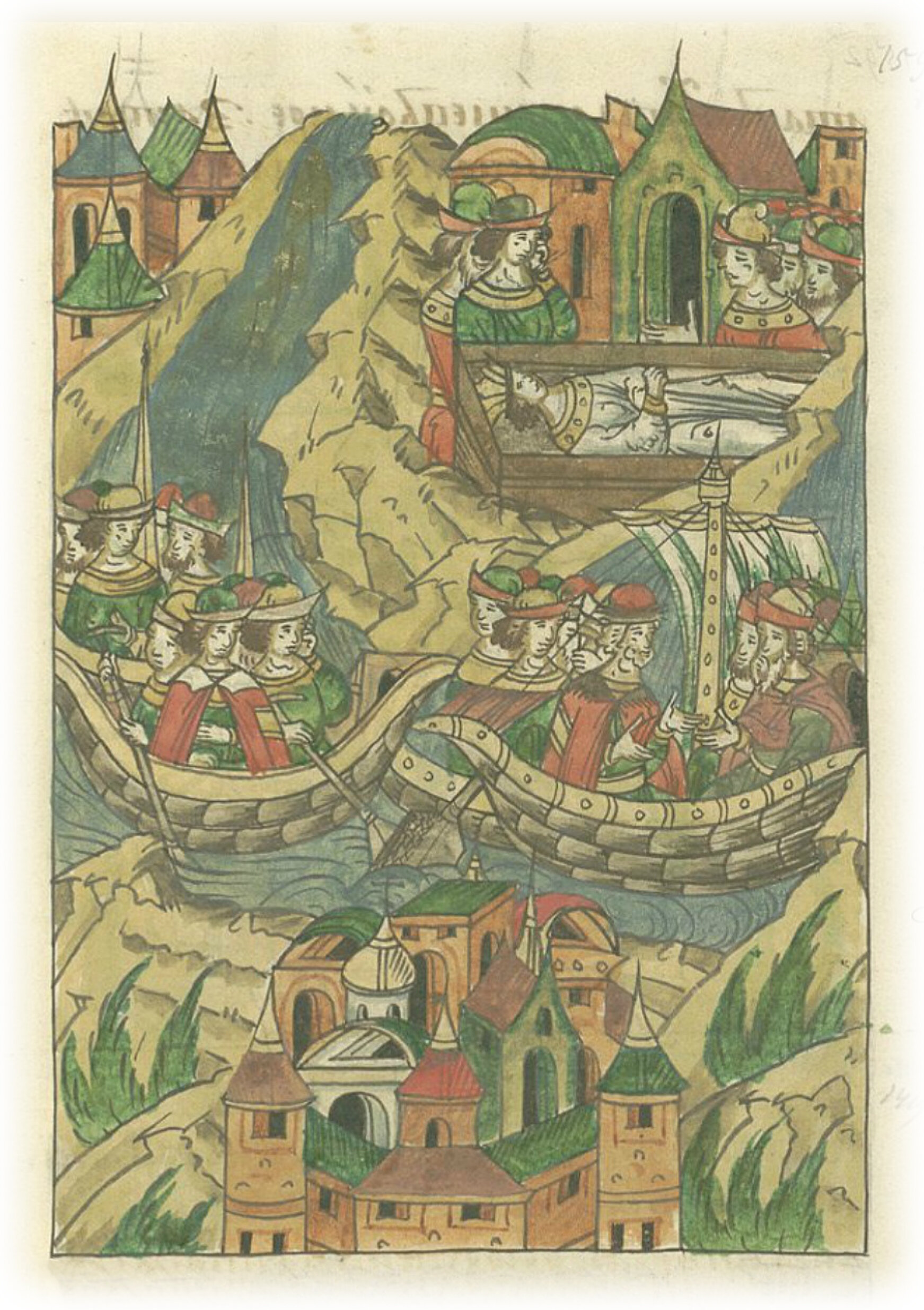 Бояре и слуги провожают великого князя Ивана Михайловича Тверского в Орду, где в это время царя Зелени-Салтана во время сражения убивает его брат Керим-Бердей.