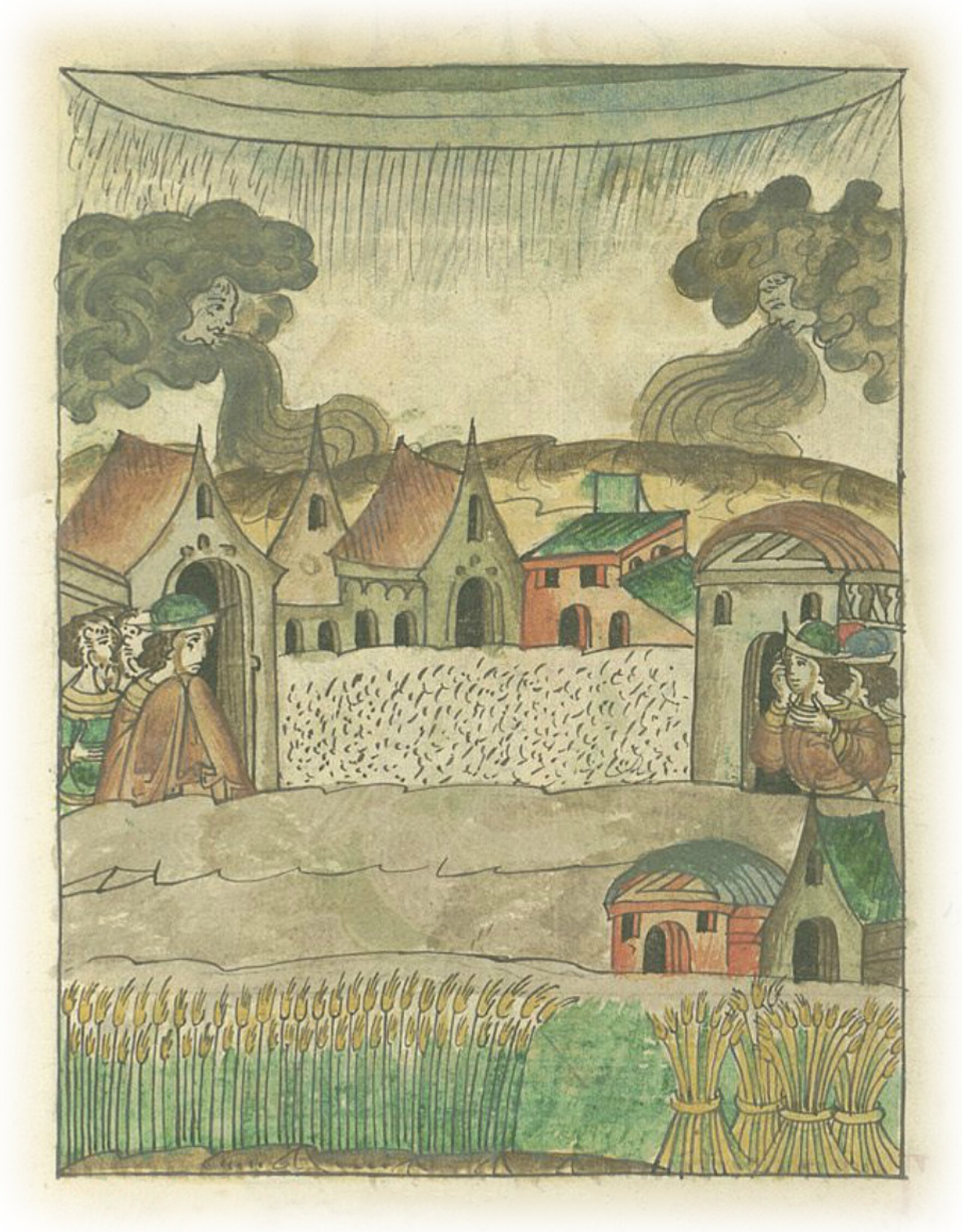 В 6929 (1421) году (месяца) сентября наступили сильные морозы. И того же месяца в 15 день выпал снег и шел в течение двух дней и двух ночей. И началась сильная буря, повсюду стало очень холодно, стояли морозы. А потом снег сошел, и совсем мало жита было сжато. И снова пошел снег, начались морозы, голод наступил во всей Русской земле.